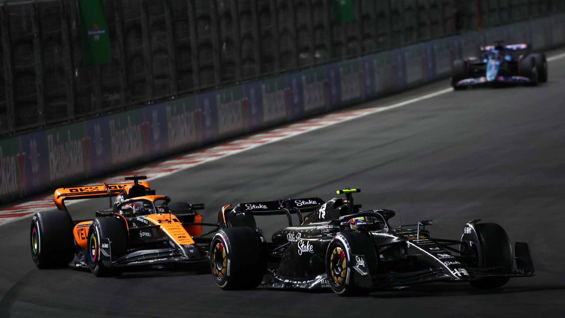 Guanyu Zhou a Oscar Piastri v závodě v Las Vegas