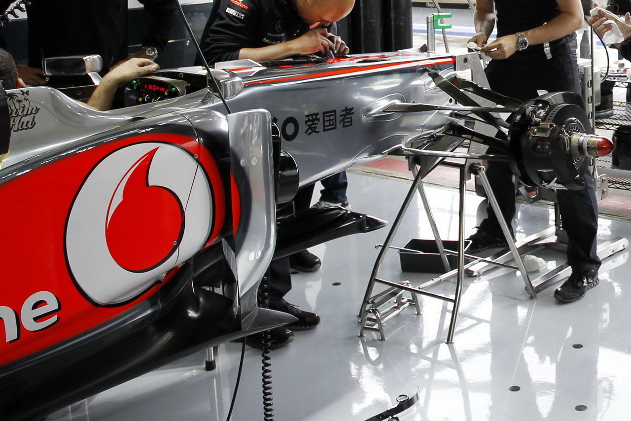 Galerie | Fotogalerie: Nejen nová zadní křídla McLarenu a Ferrari v deštivých trénincích