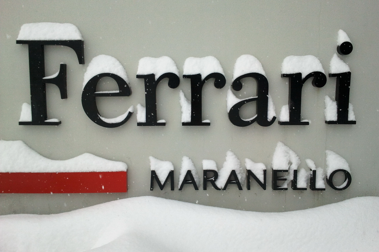 Galerie | Maranello pod sněhem, první výjezd nového Ferrari ohrožen (+ foto)