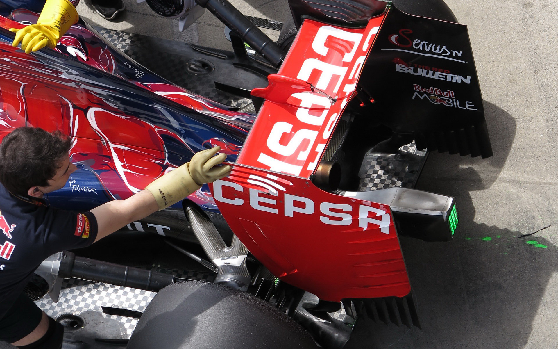 Zadní křídlo a výfuk vozu Toro Rosso STR10 Ferrari