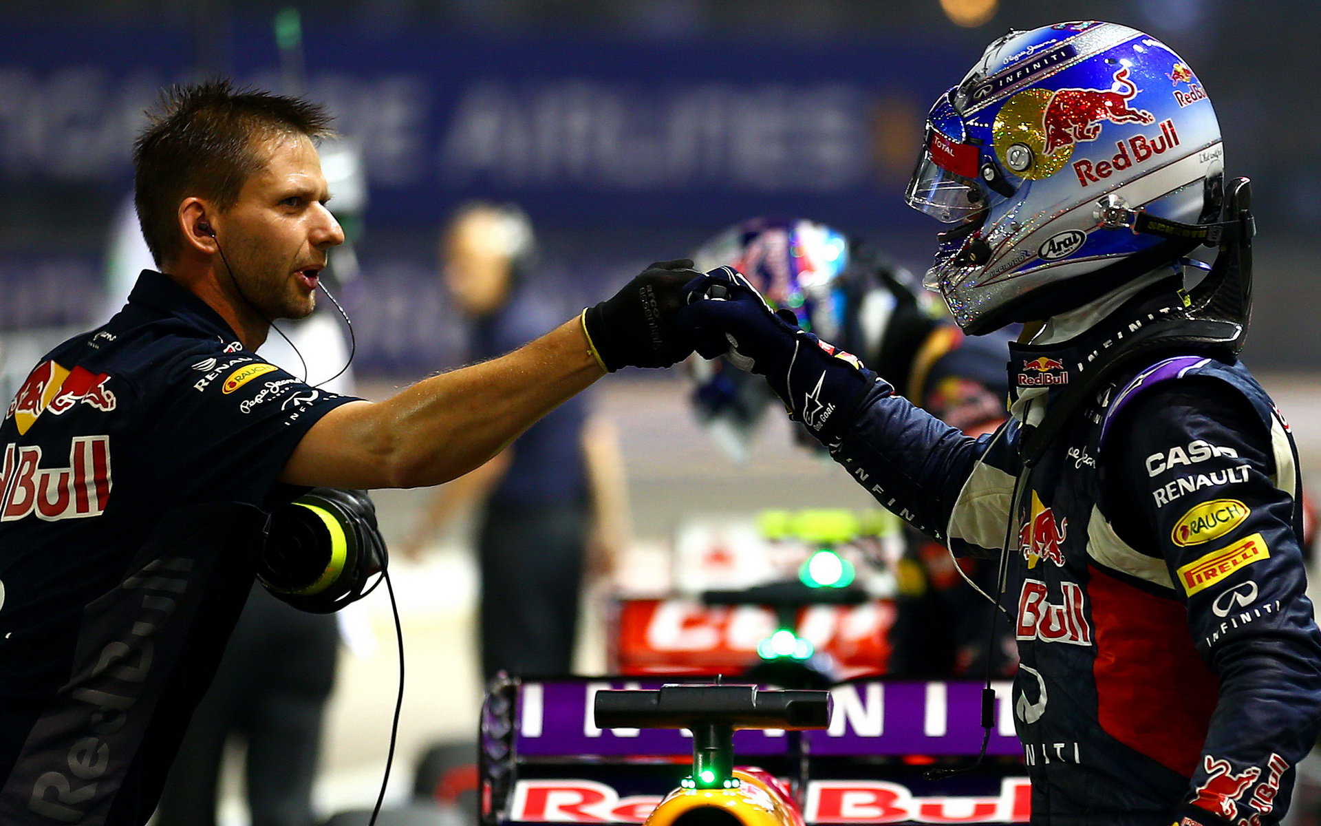 Daniel Ricciardo se raduje z druhého místa v kvalifikaci, GP Singapuru (Singapur)