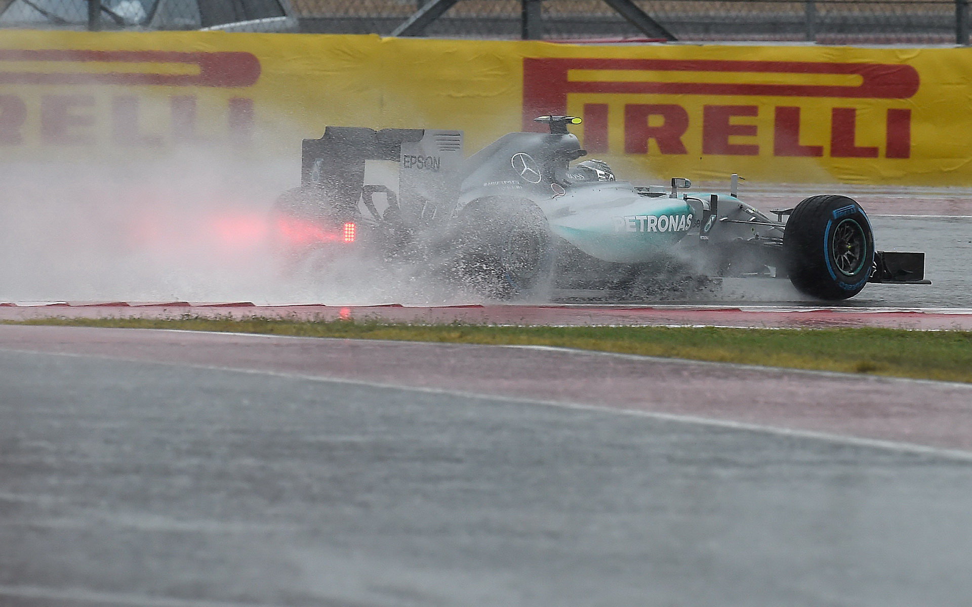 Nico Rosberg bojuje se silným deštěm v Austinu