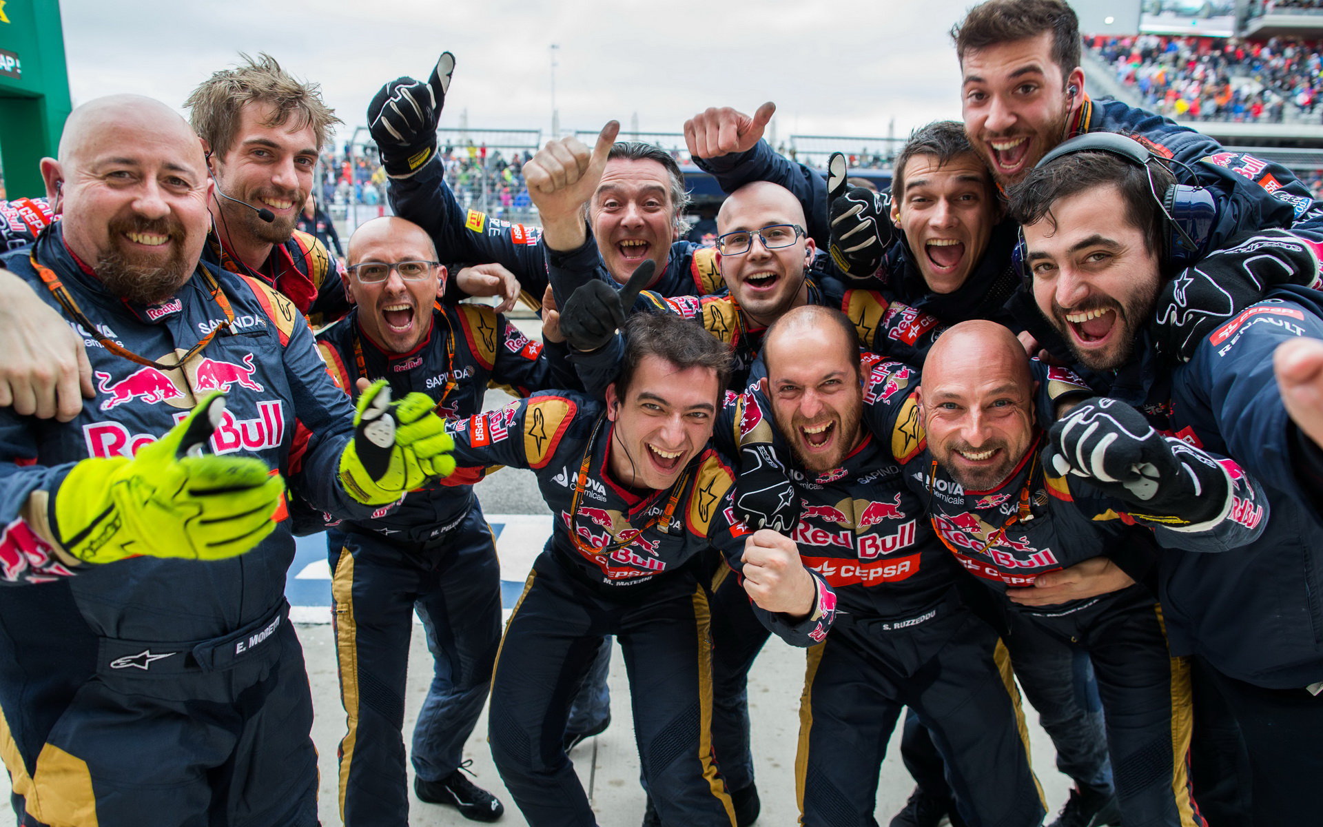 Mechanici Maxe Verstappena se radují ze 4.místa v Austinu