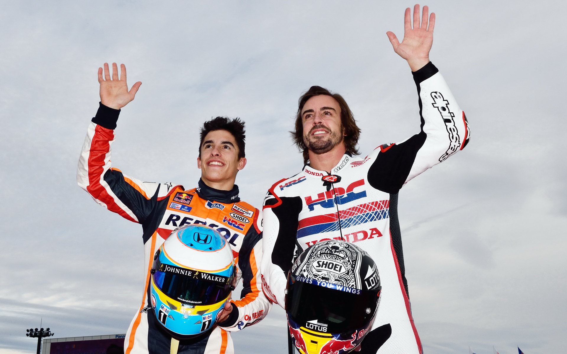 Marc Marquez a Fernando Alonso při Thanks Day na okruhu Twin Ring Motegi