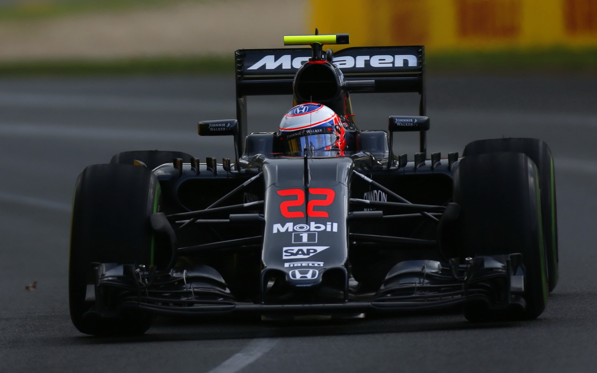 Jenson Button s McLarenem během pátečních tréninků v Austrálii