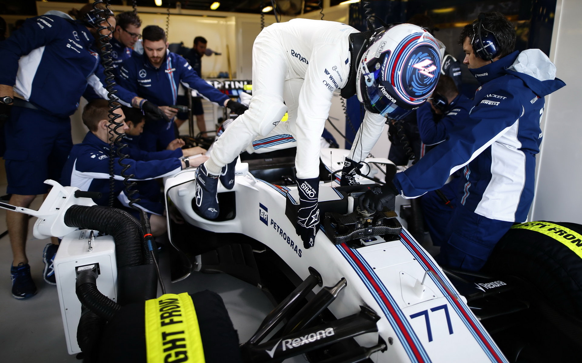 Valtteri Bottas nasedá do svého vozu v Melbourne