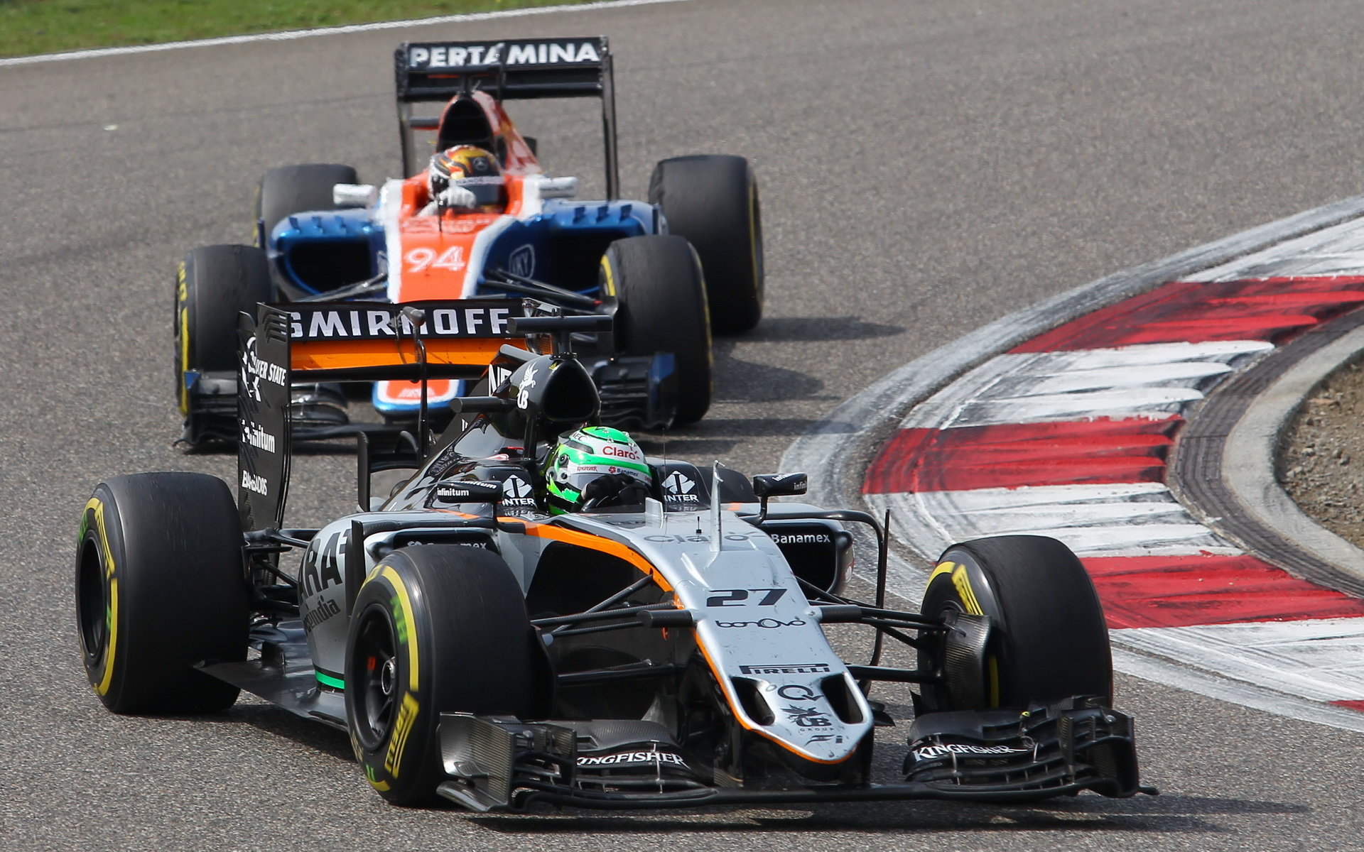Nico Hülkenberg a Pascal Wehrlein v závodě v Číně