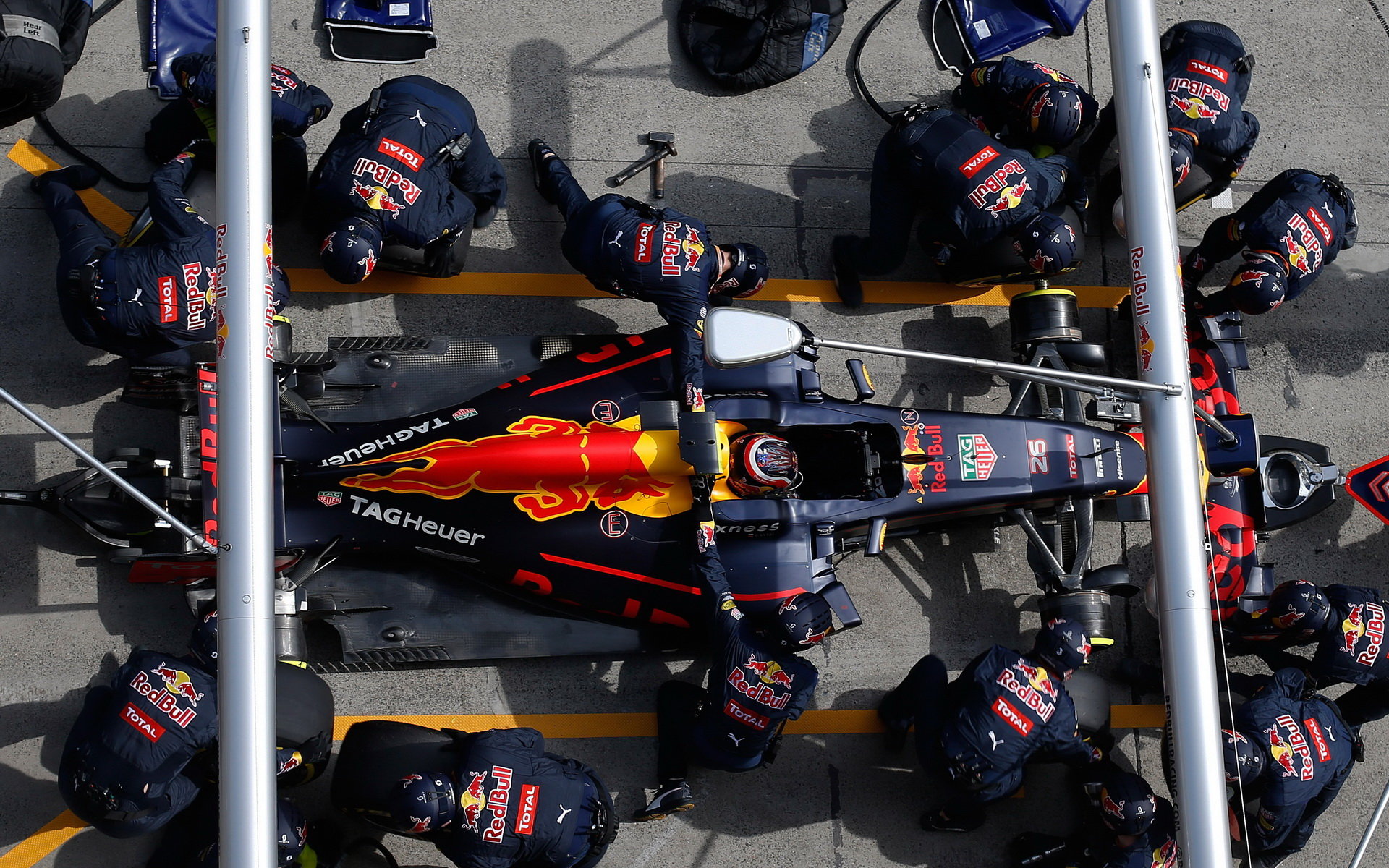 Daniil Kvjat při zastávce v boxech v závodě v Číně