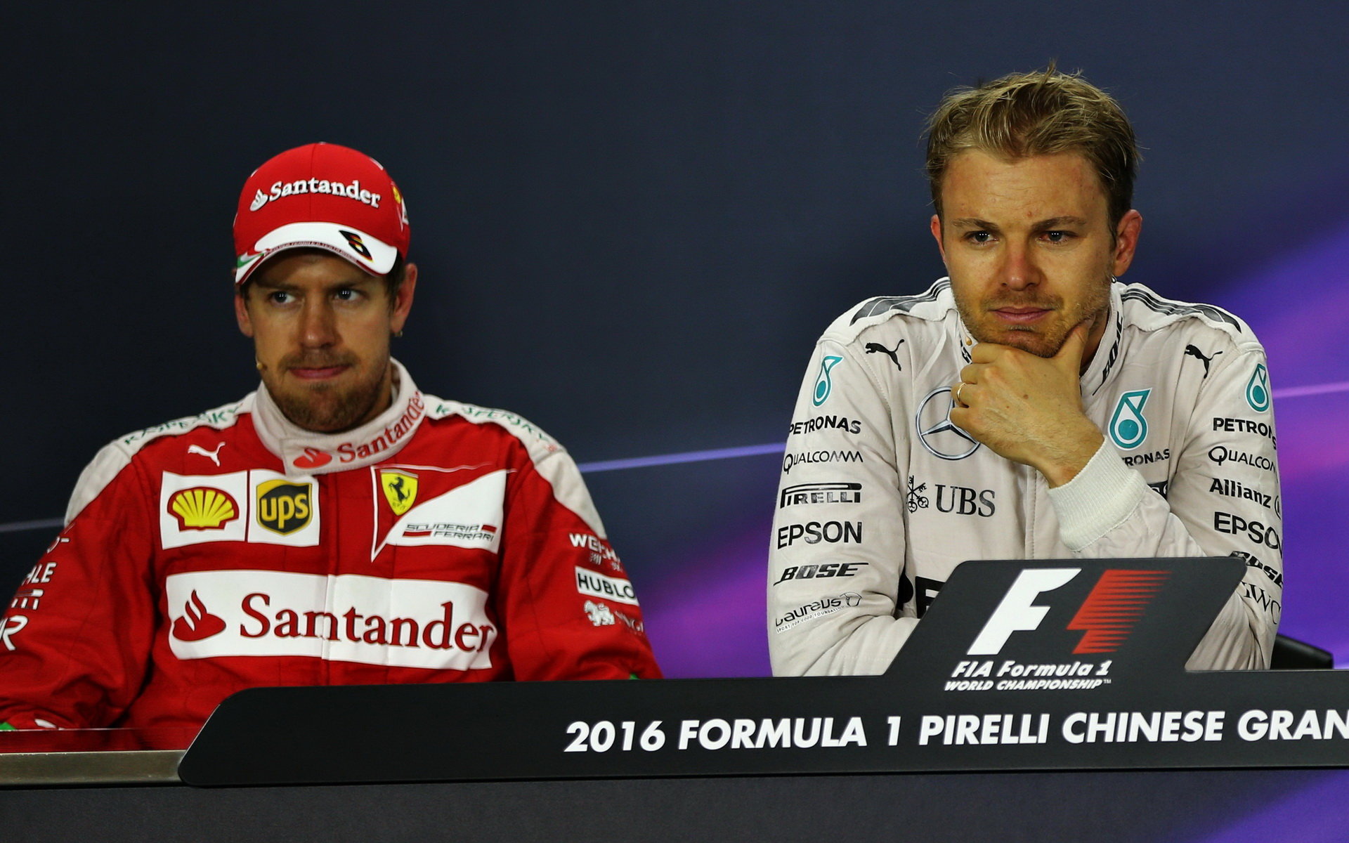 Sebastian Vettel a Nico Rosberg na tiskovnce po závodě v Číně