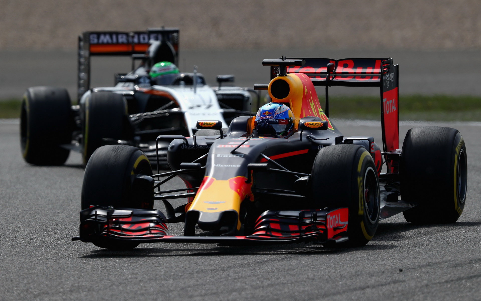 Daniel Ricciardo a Nico Hülkenberg v závodě v Číně
