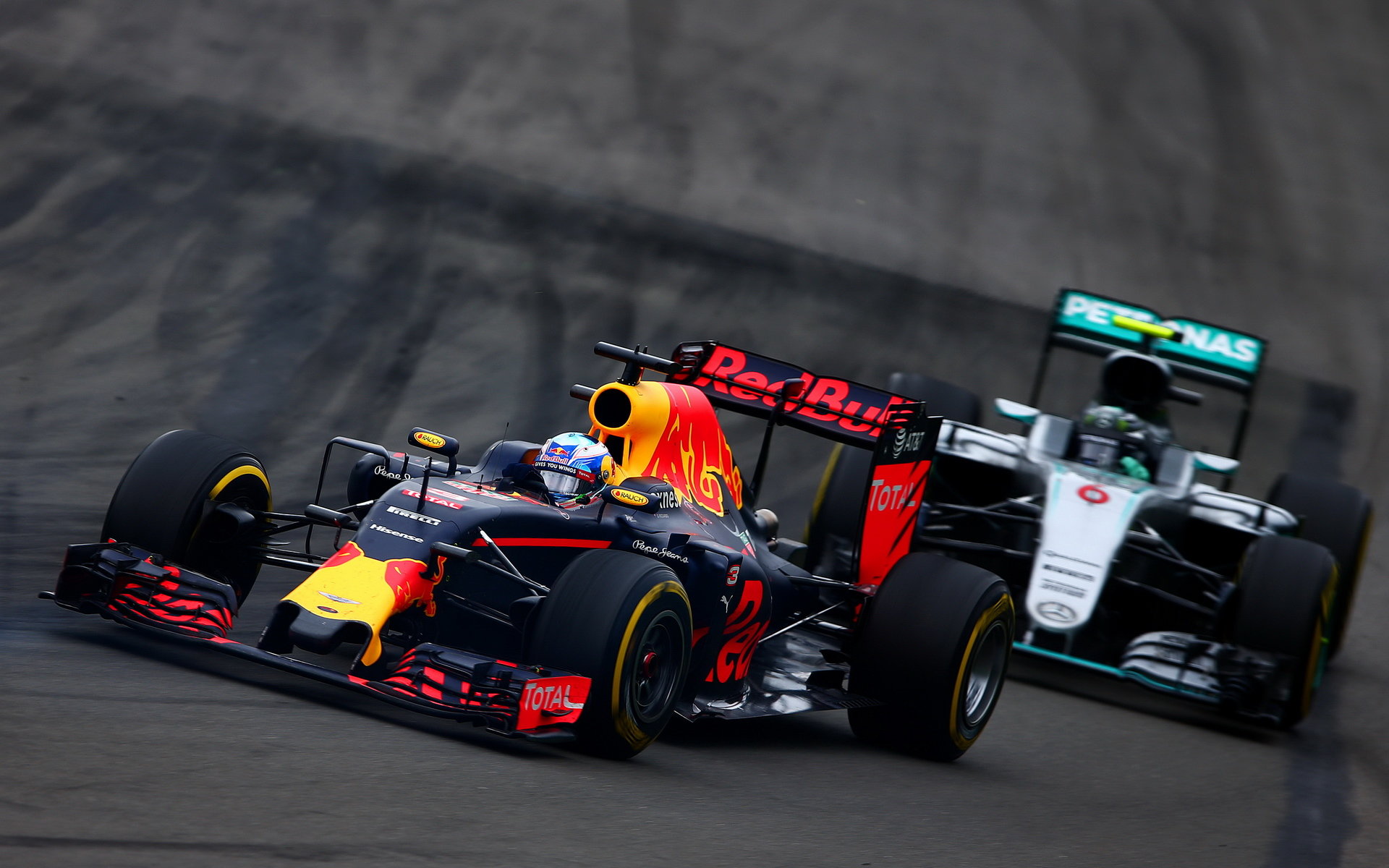 Daniel Ricciardo a Nico Rosberg v závodě v Kanadě