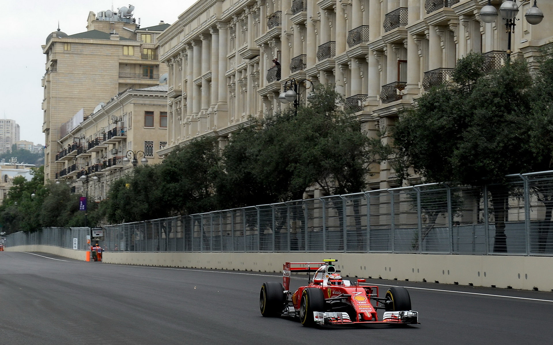 Kimi Räikkönen s použitím DRS při tréninku v Baku