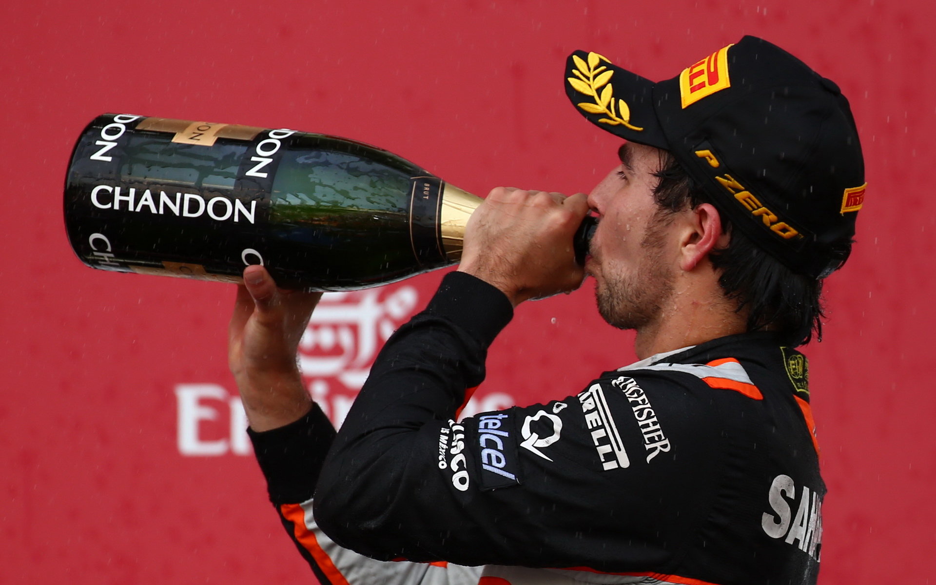 Sergio Pérez na pódiu v Baku