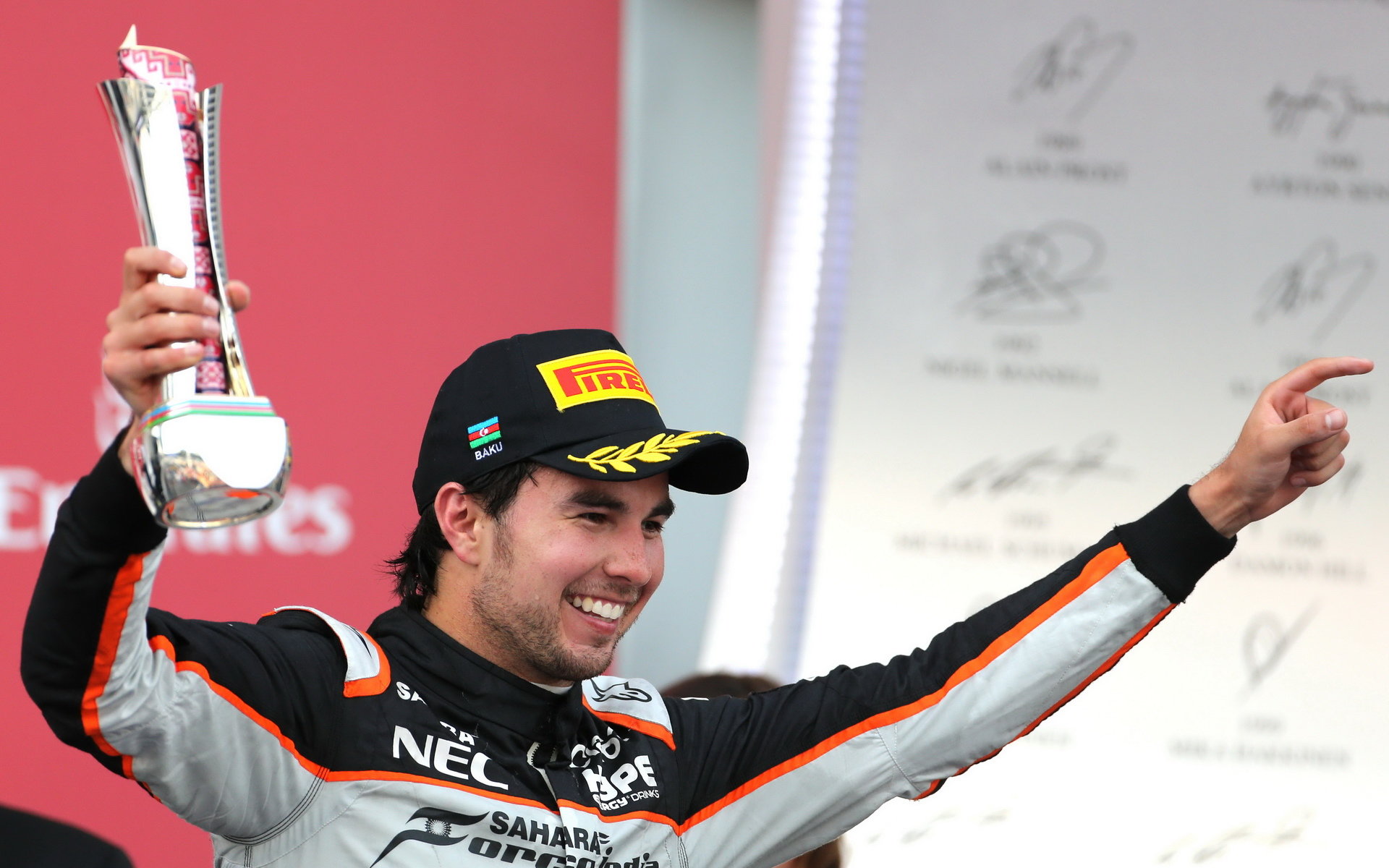 Sergio Pérez na pódiu v Baku