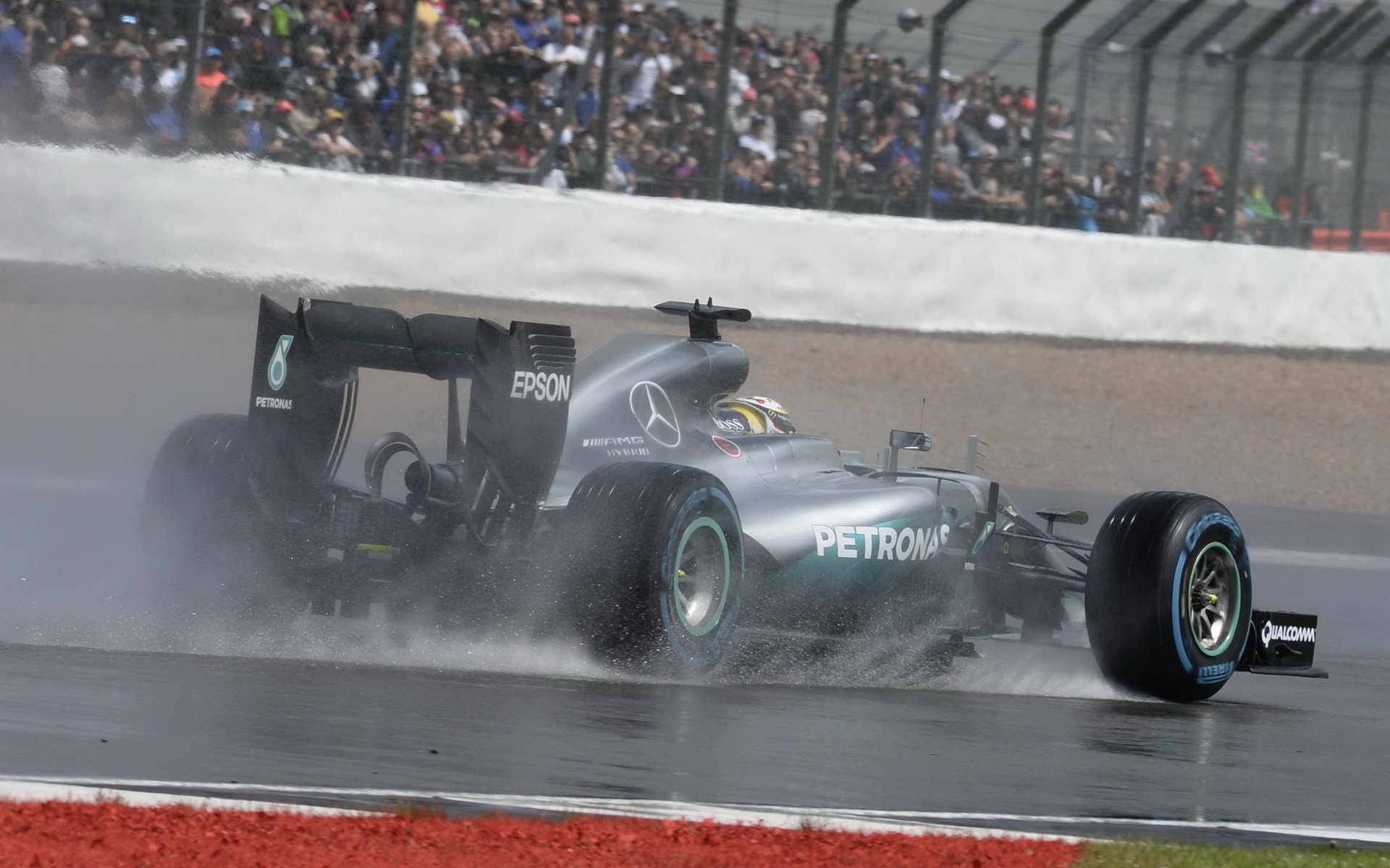 Lewis Hamilton za deště v závodě v Silverstone