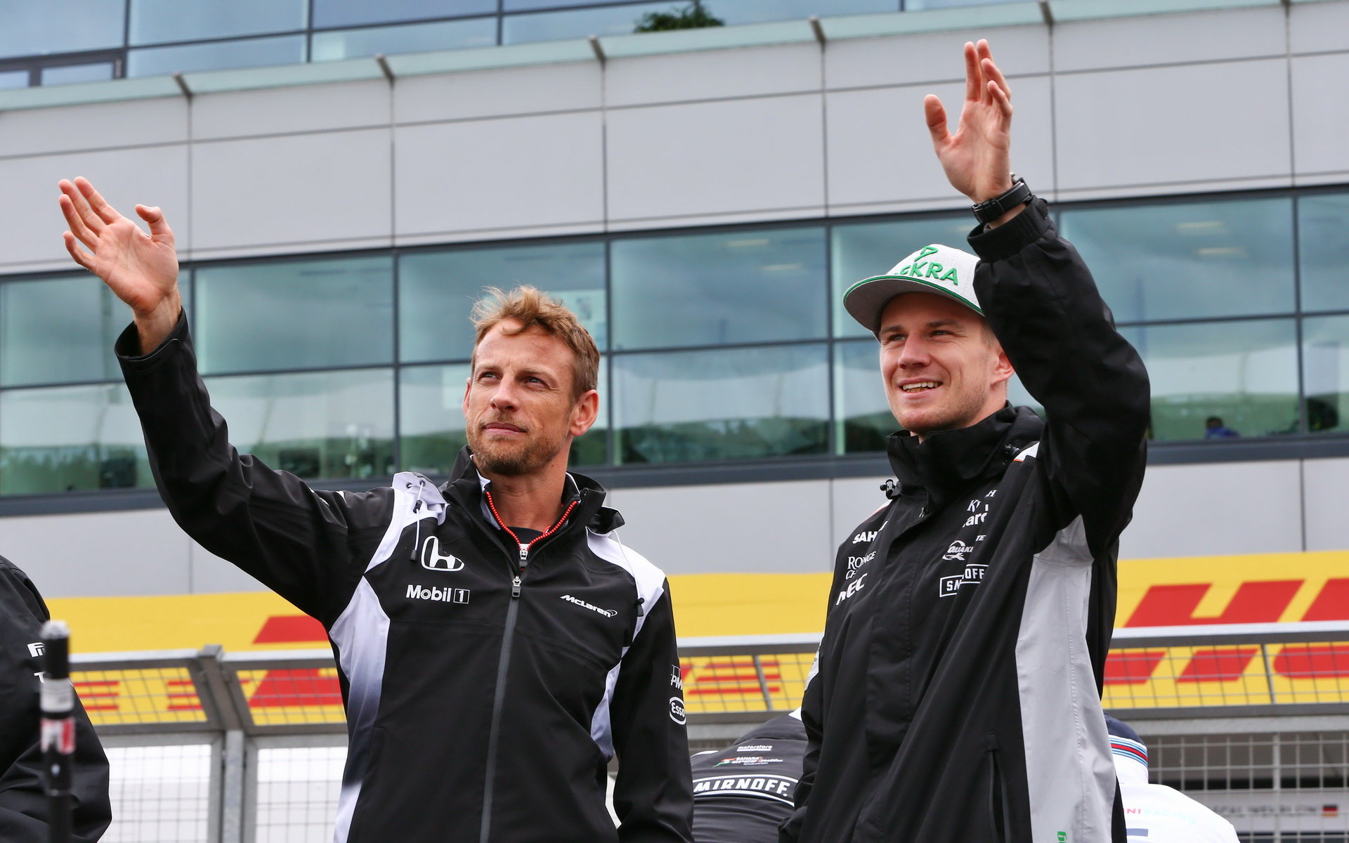 Jenson Button a Nico Hülkenberg před závodem v Silverstone