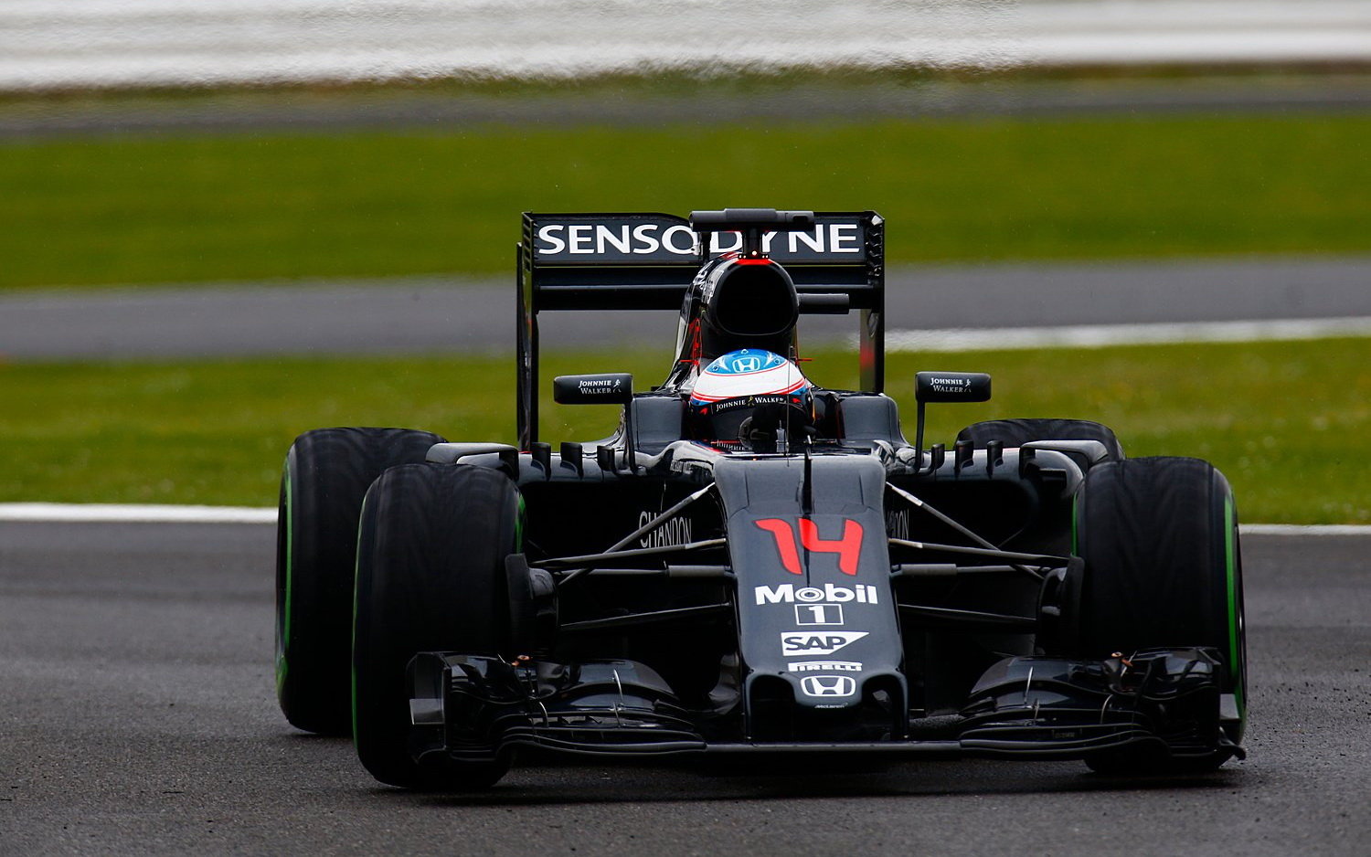 Fernando Alonso s McLarenem MP4-31 během 1. dne testů v Silverstone