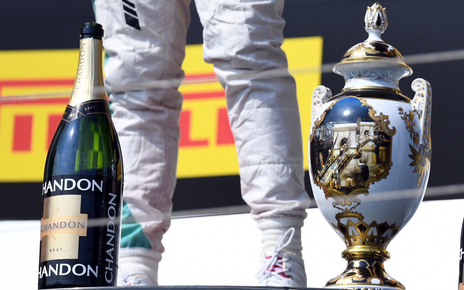 Trofej Lewise Hamiltona po závodě v Maďarsku