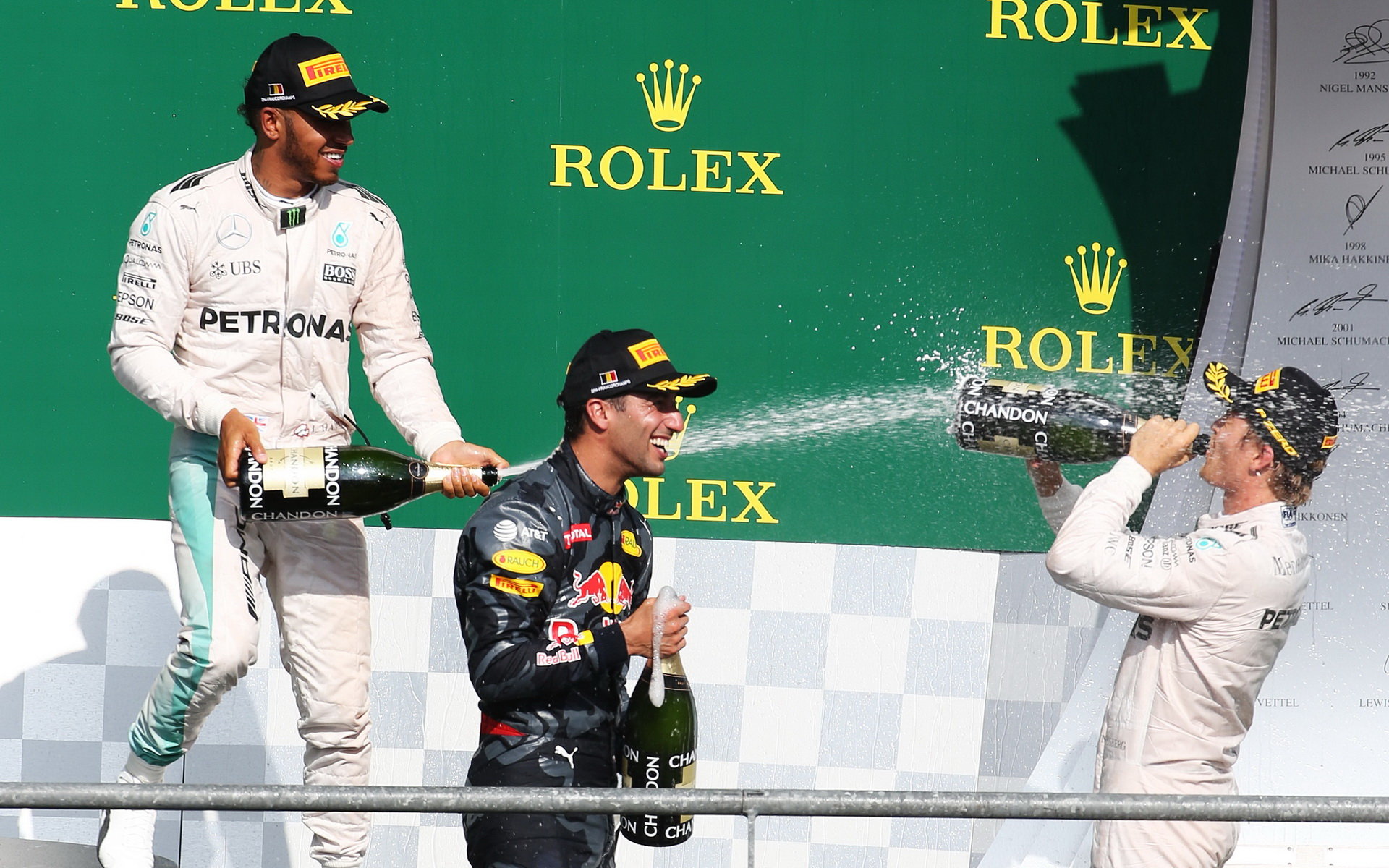 Nejlepší jezdci na pódiu po závodě v Belgii
