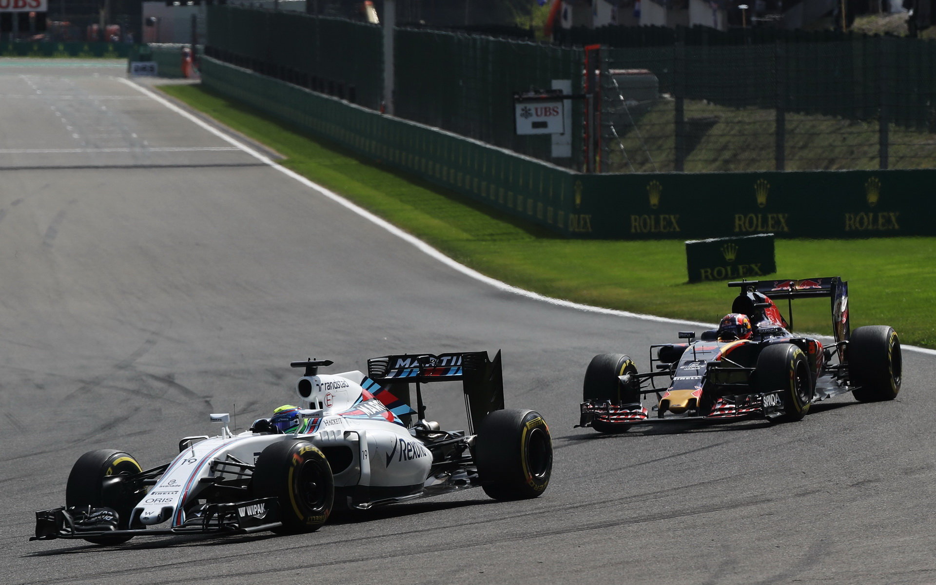 Felipe Massa a Daniil Kvjat v závodě v Belgii