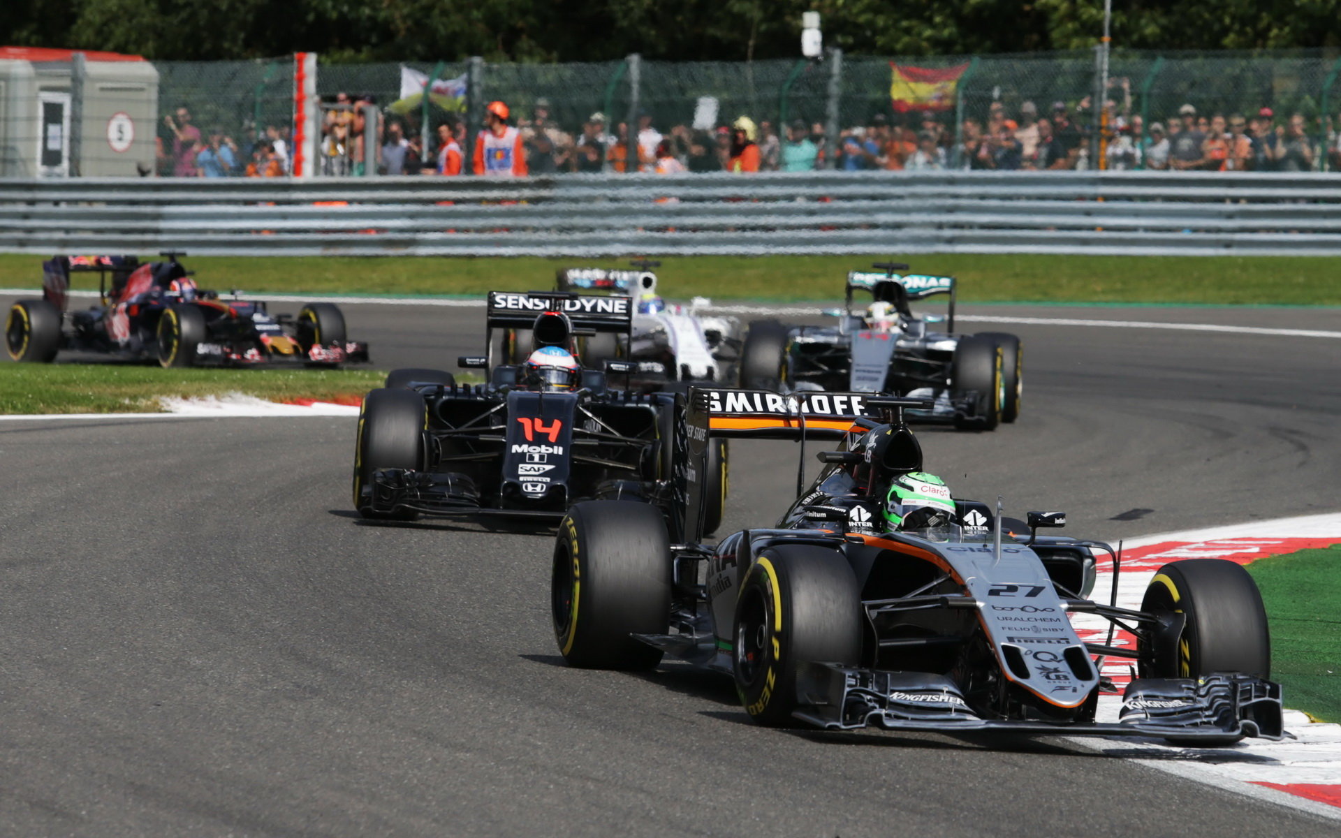 Nico Hülkenberg a Fernando Alonso v závodě v Belgii