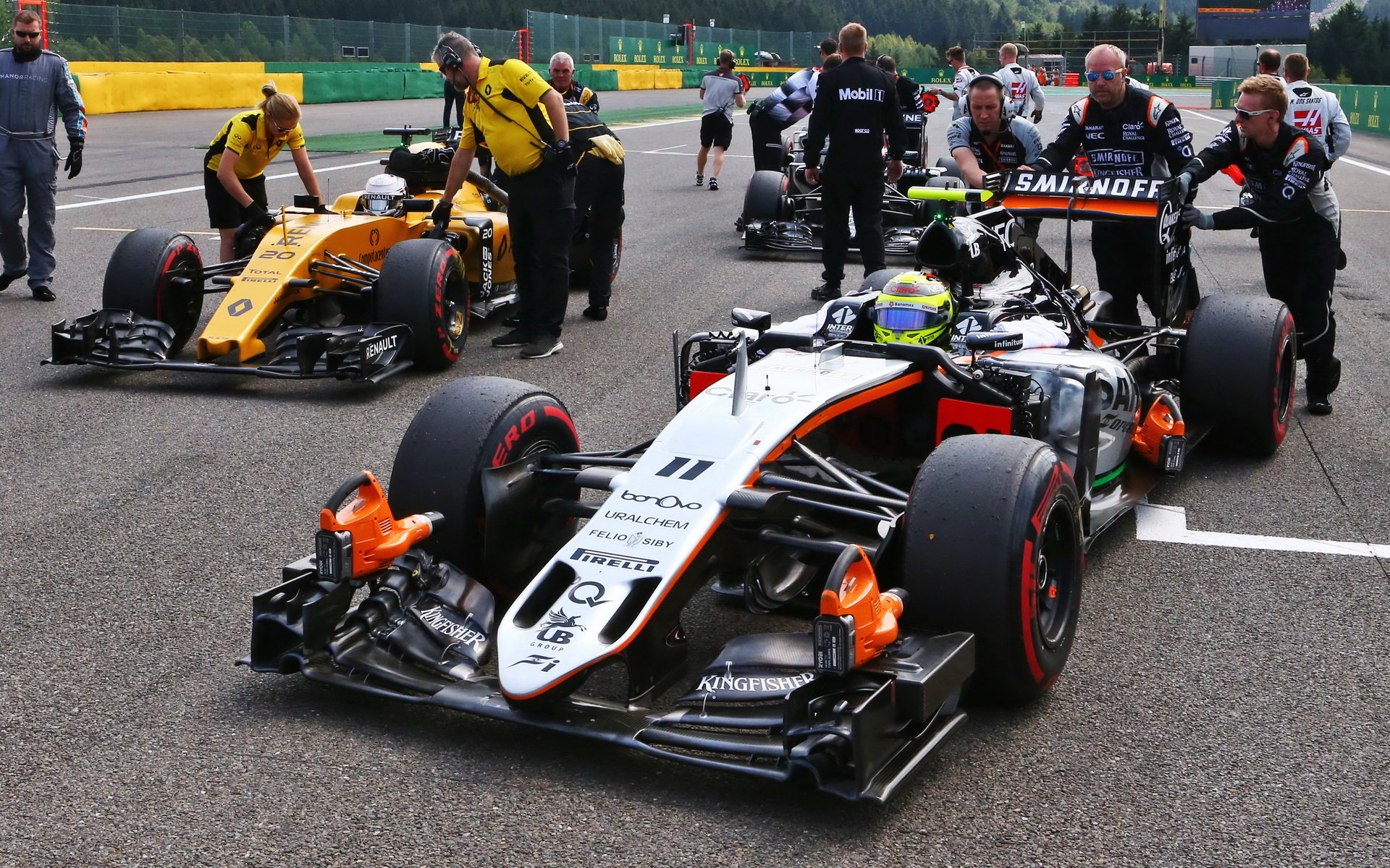 Sergio Pérez a Kevin Magnussen před závodem v Belgii