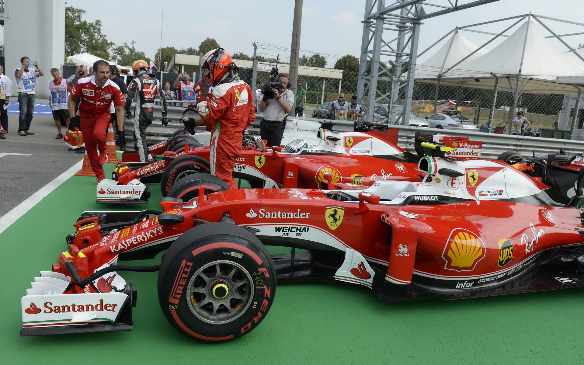 Kimi Räikkönen a Sebastian Vettel po kvalifikaci na Monze