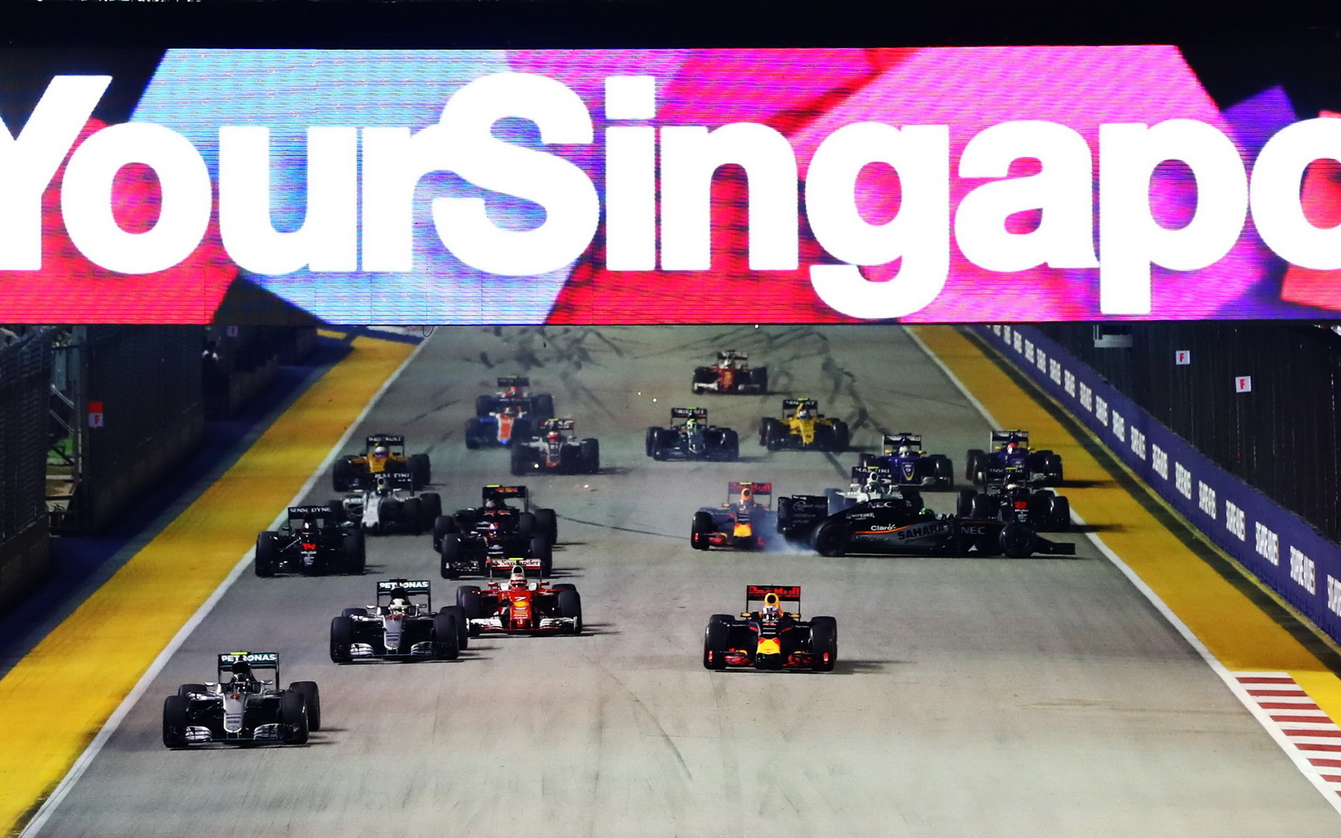 Start závodu a nehoda Nica Hülkenberga v Singapuru