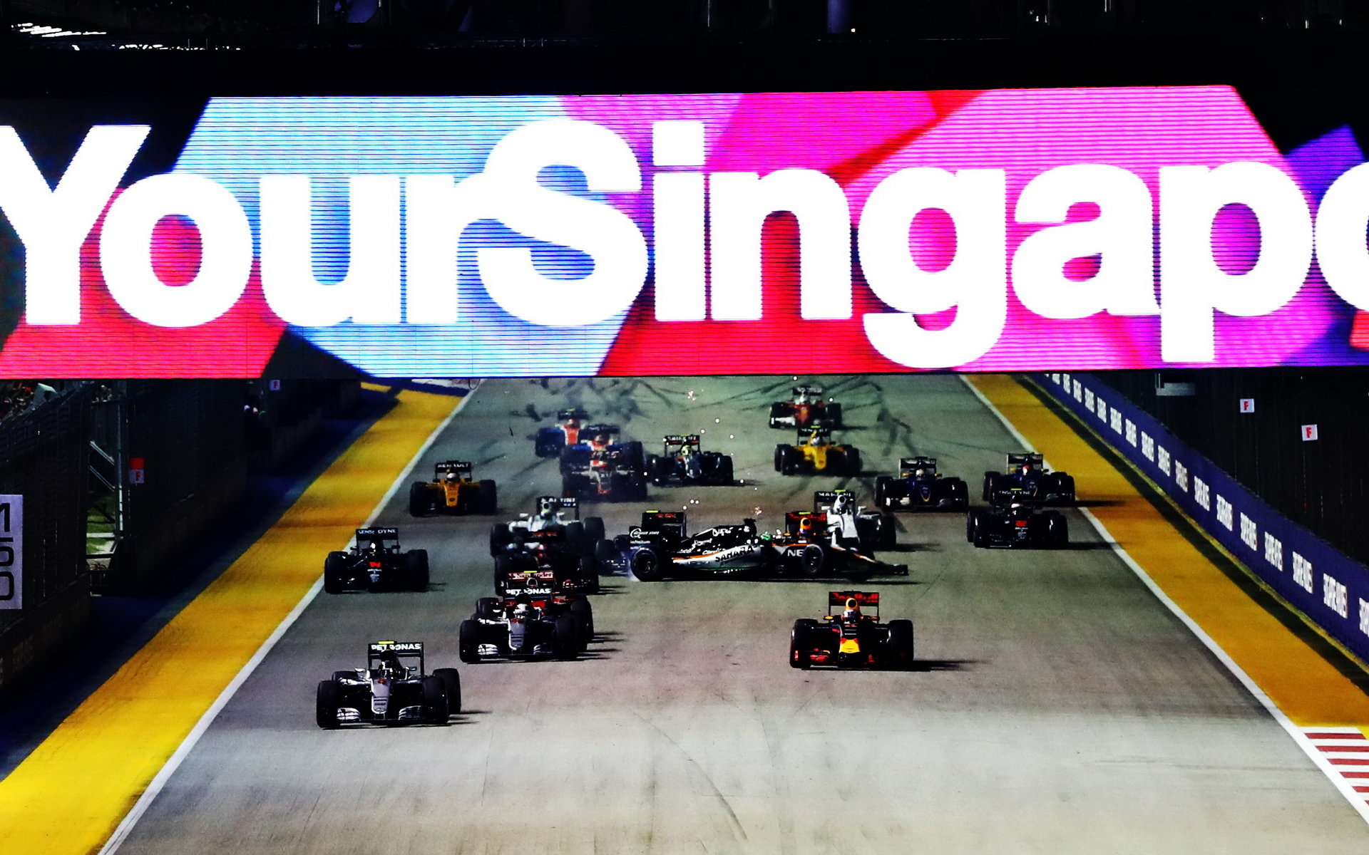 Start závodu a nehoda Nica Hülkenberga v Singapuru