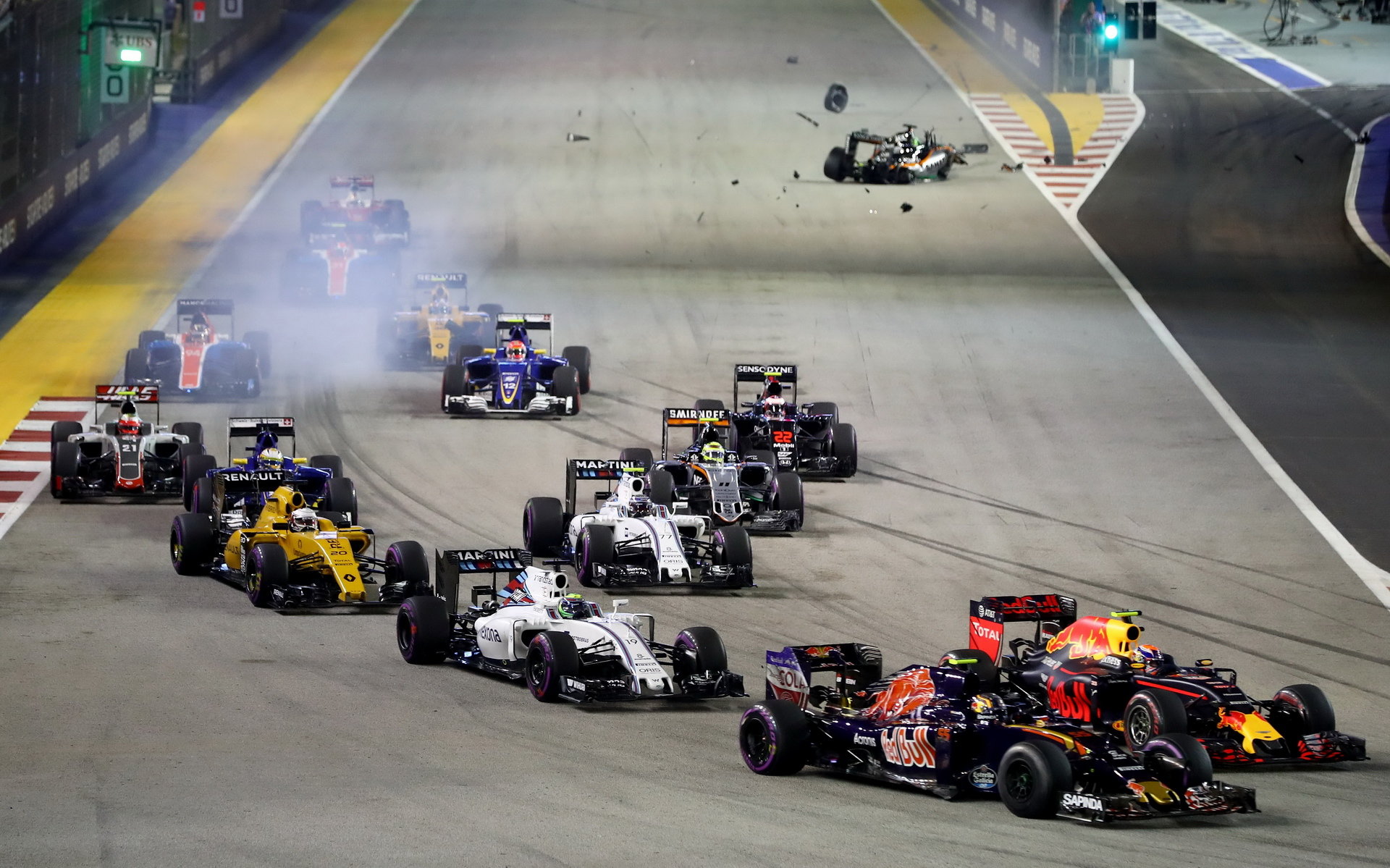 Start závodu a nehoda Nica Hülkenberga v Singapuru