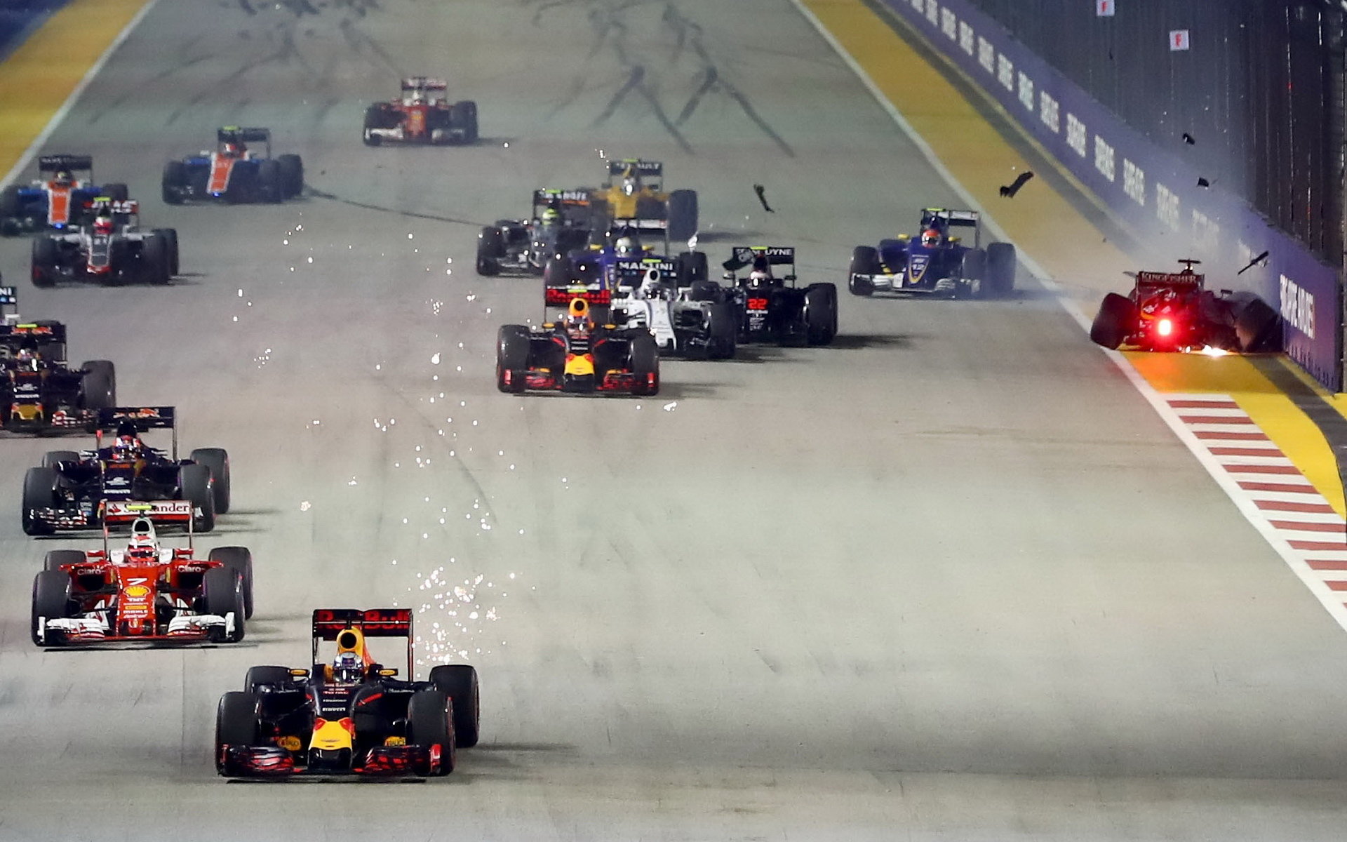 Start závodu a nehoda Nica Hülkenberga v Singapuru