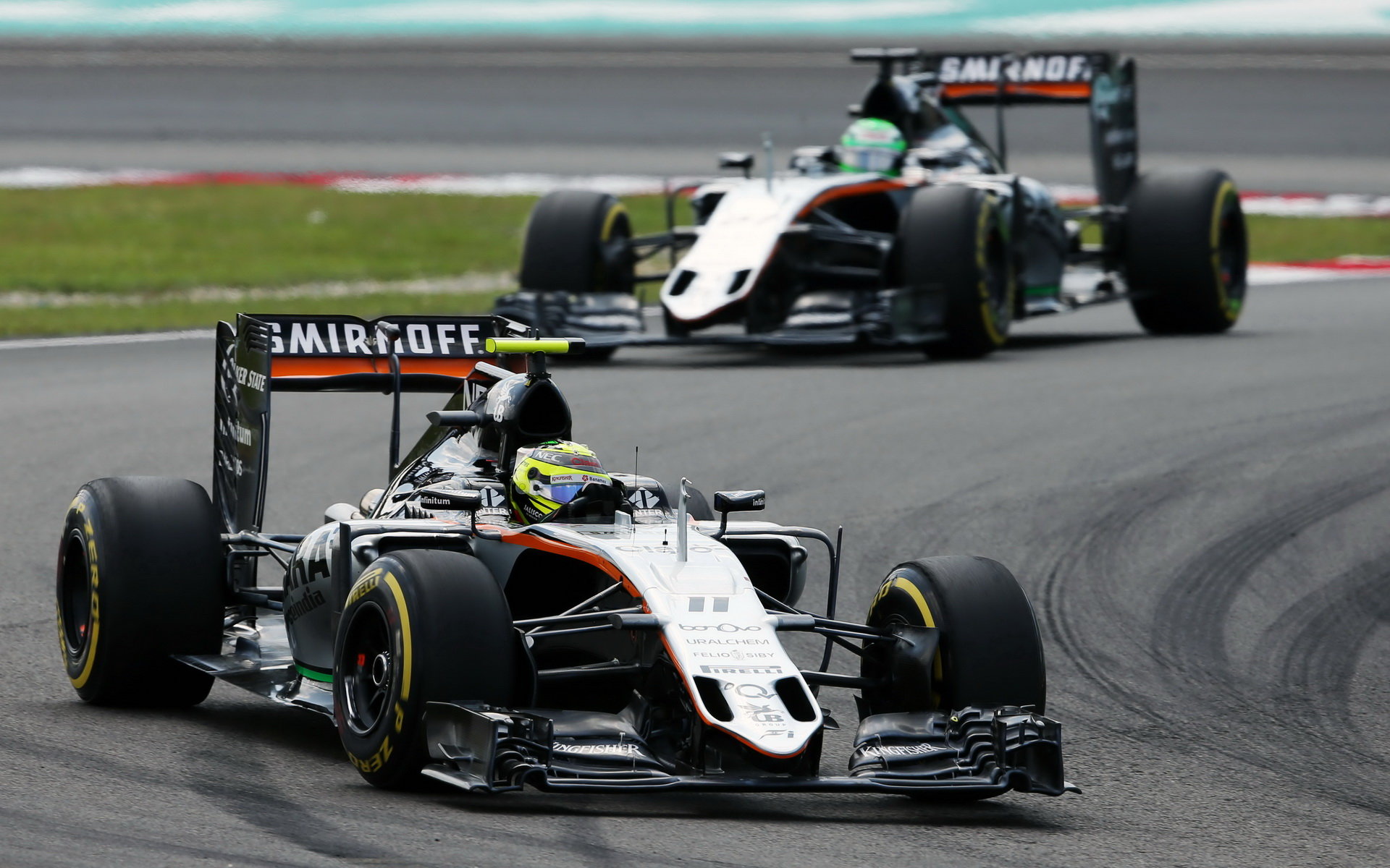 Sergio Pérez a Nico Hülkenberg v závodě v Malajsii