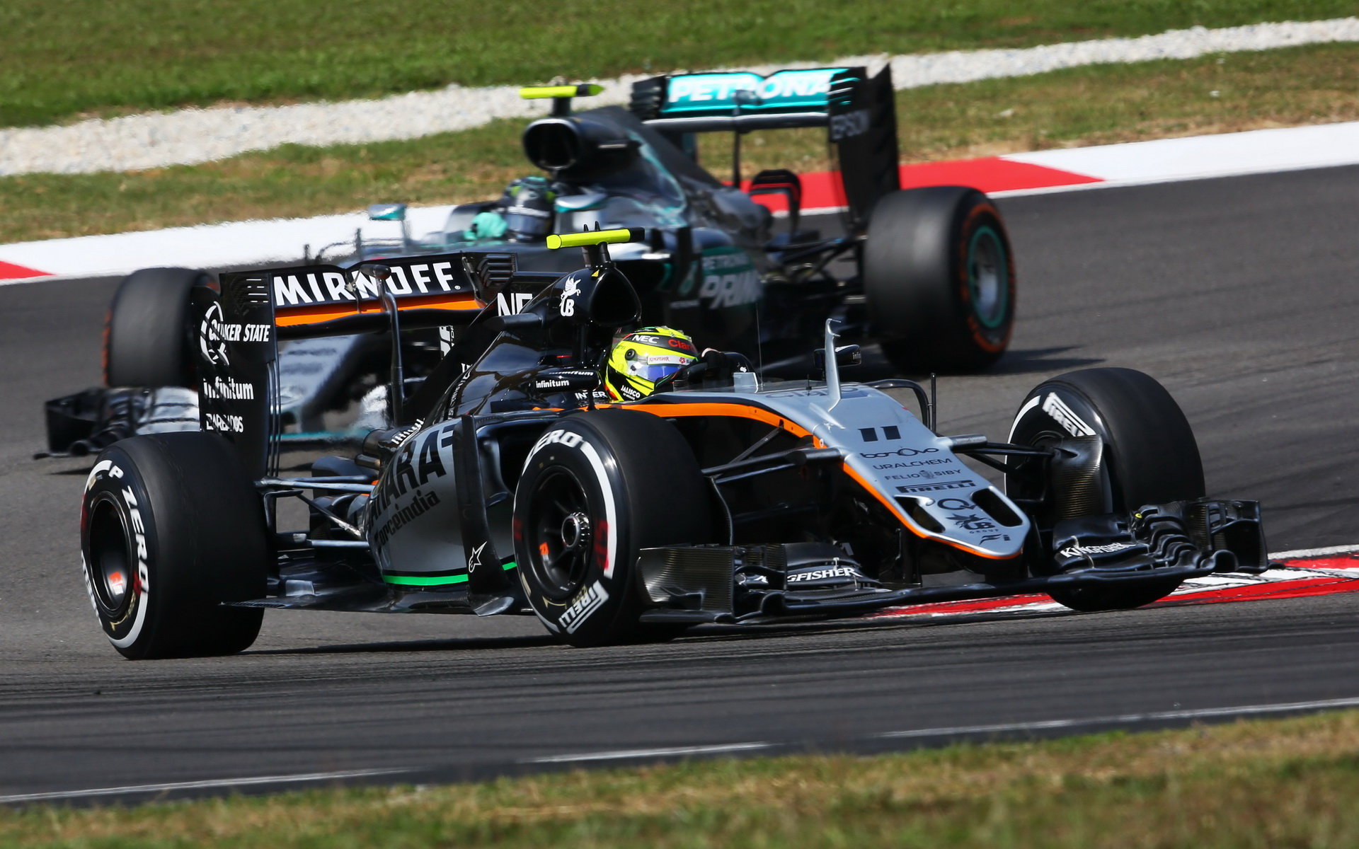 Sergio Pérez a Nico Rosberg v závodě v Malajsii