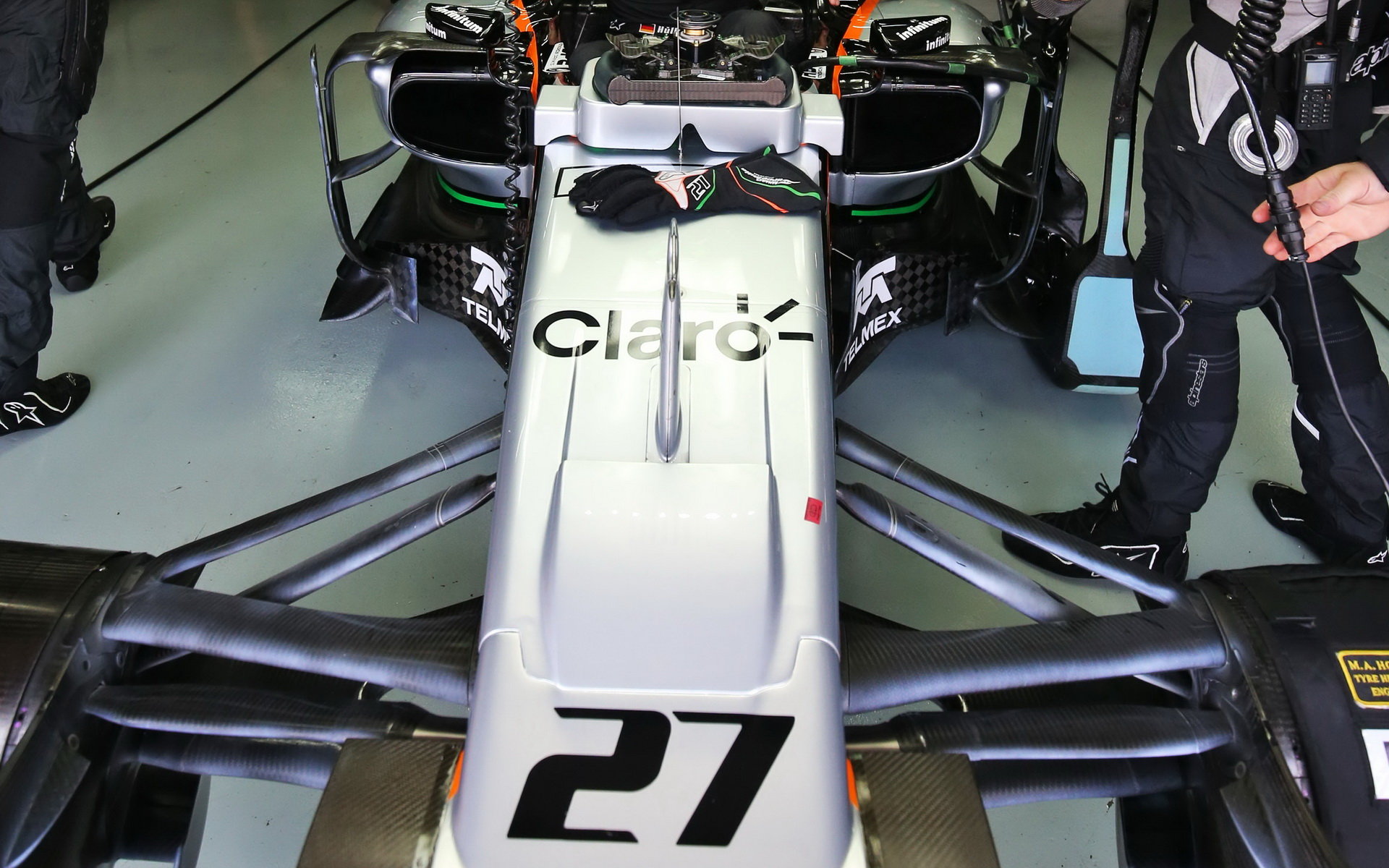 Zavěšení předních kol vozu Force India VJM09 - Mercedes v Malajsii