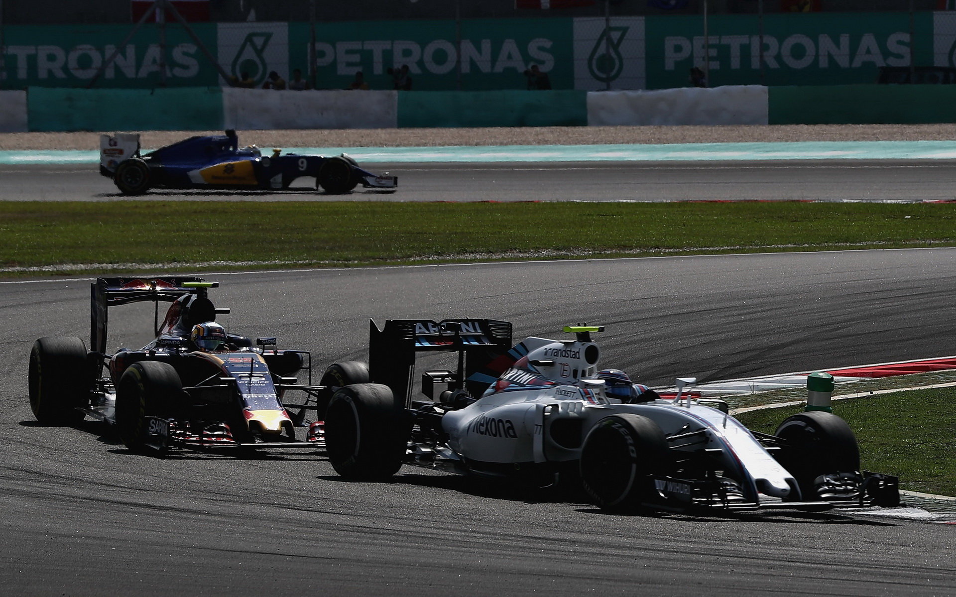 Valtteri Bottas a Carlos Sainz v závodě v Malajsii