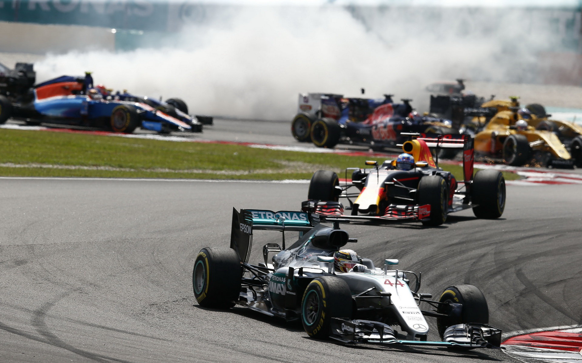 Lewis Hamilton po startu závodu v Malajsii