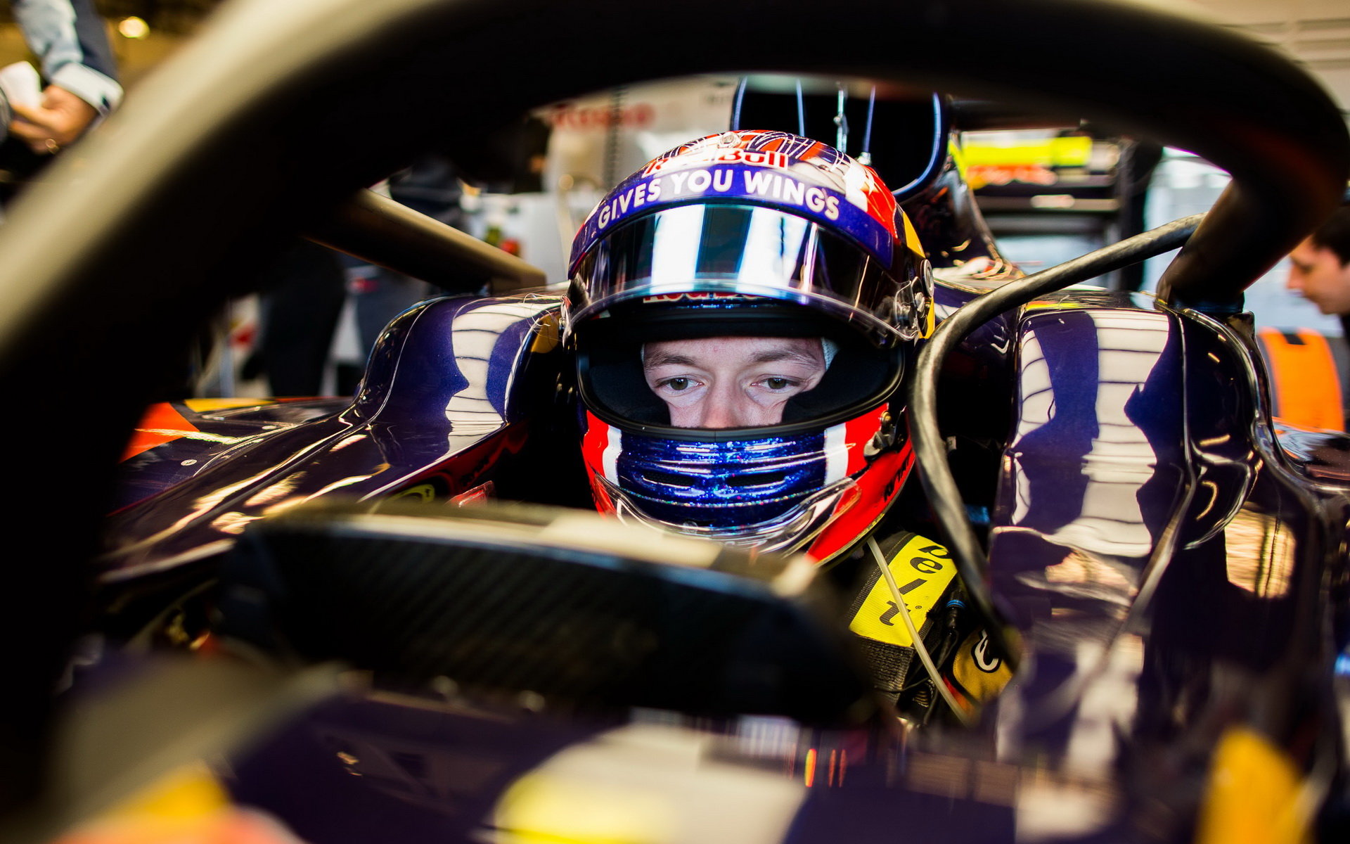 Daniil Kvjat testuje ochranu kokpitu při pátečním tréninku v Austinu