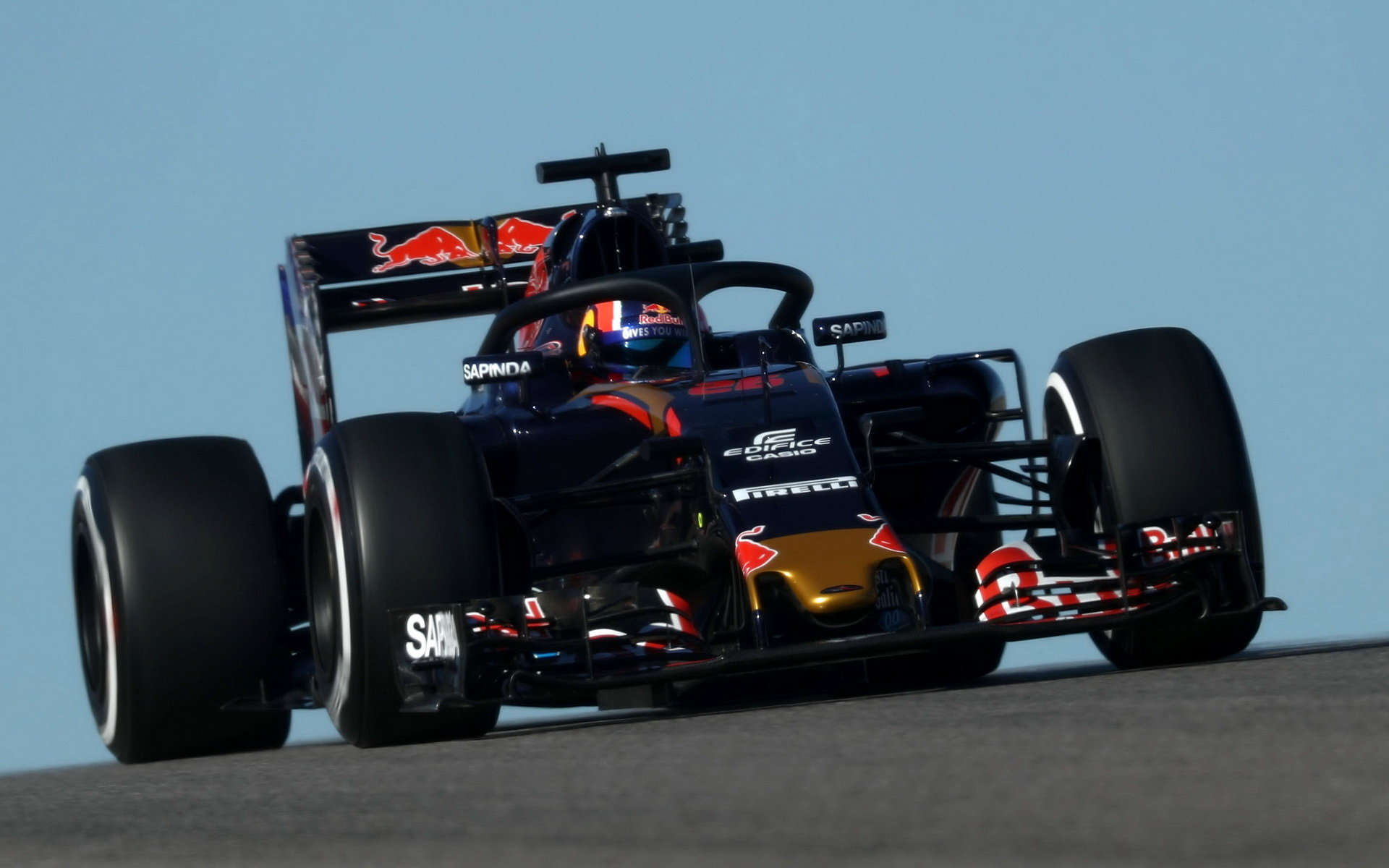 Daniil Kvjat testuje ochranu kokpitu při pátečním tréninku v Austinu