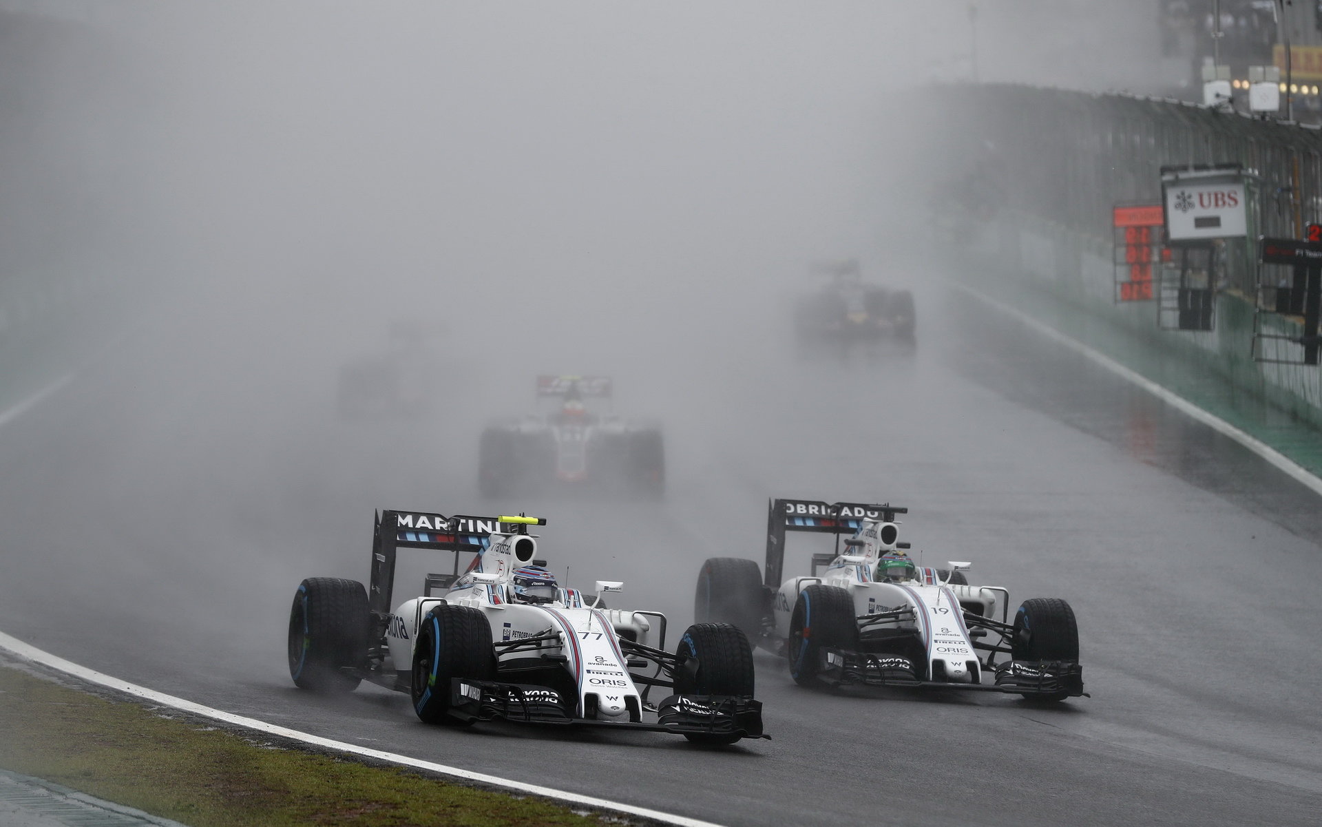 Galerie | FOTO: Deštivý, dvakrát přerušený závod v Brazílii, přinesl drama i krásná předjetí