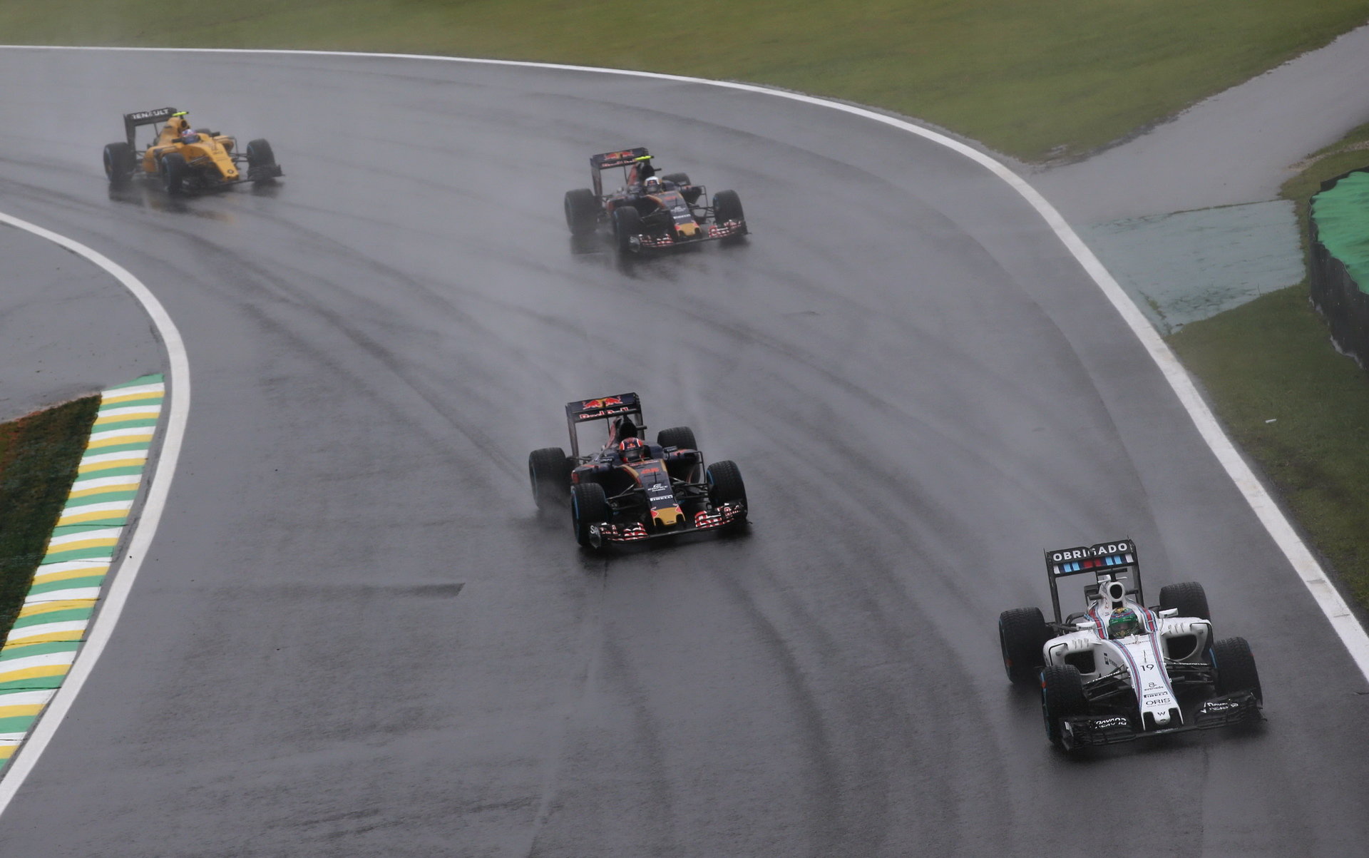 Galerie | FOTO: Deštivý, dvakrát přerušený závod v Brazílii, přinesl drama i krásná předjetí