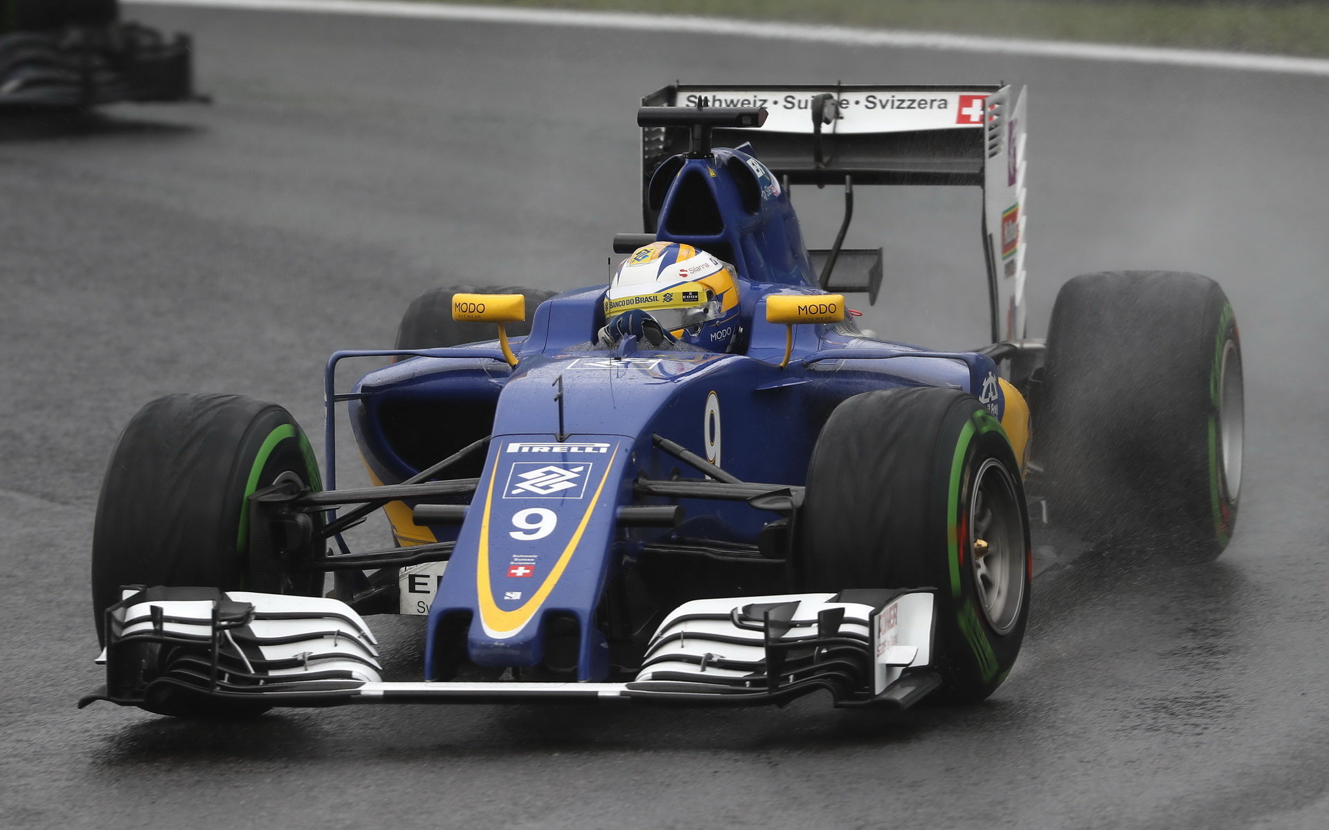 Marcus Ericsson počas deštivého závodu v Brazílii