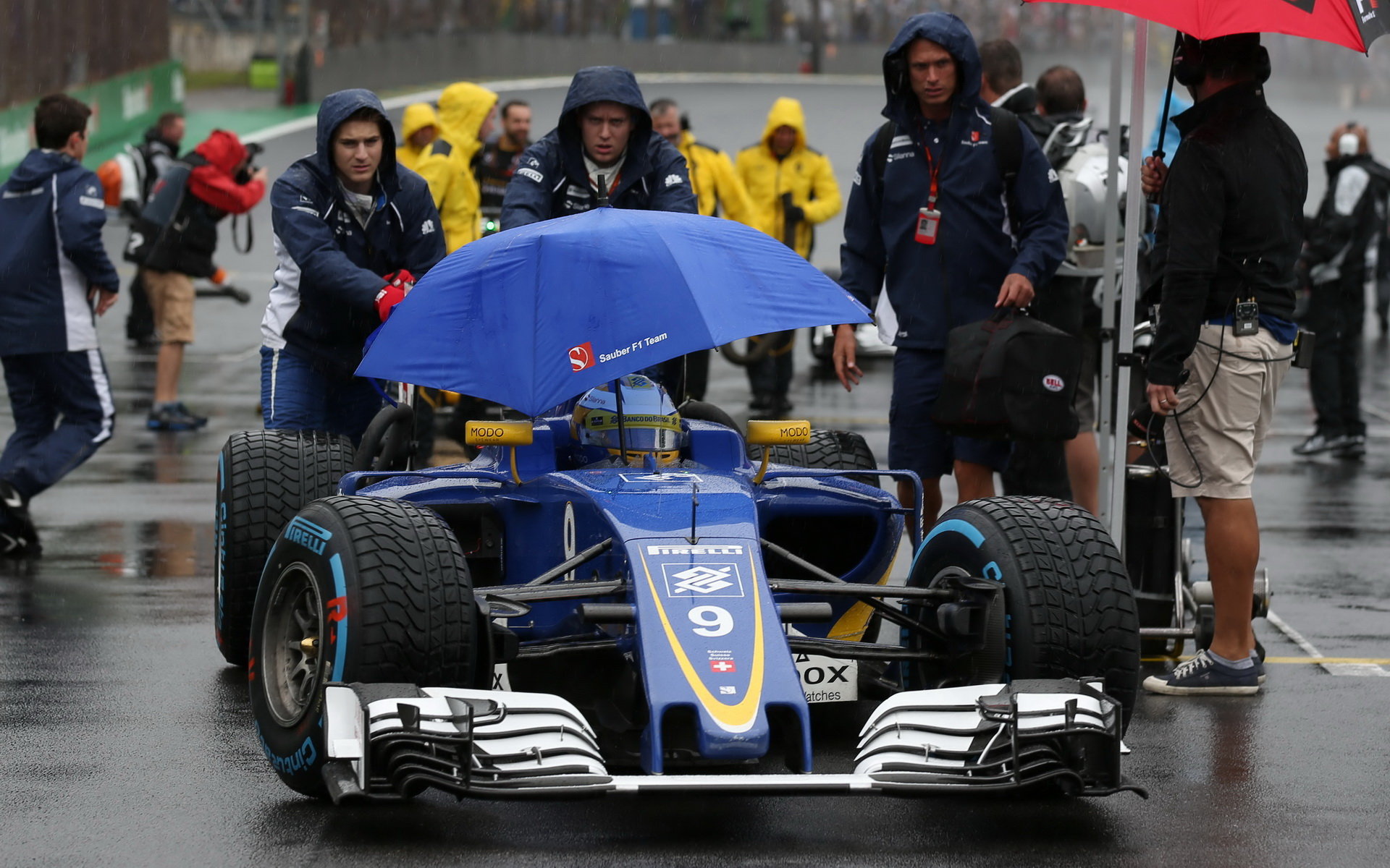 Galerie | FOTO: Deštivý, dvakrát přerušený závod v Brazílii, přinesl drama i krásná předjetí