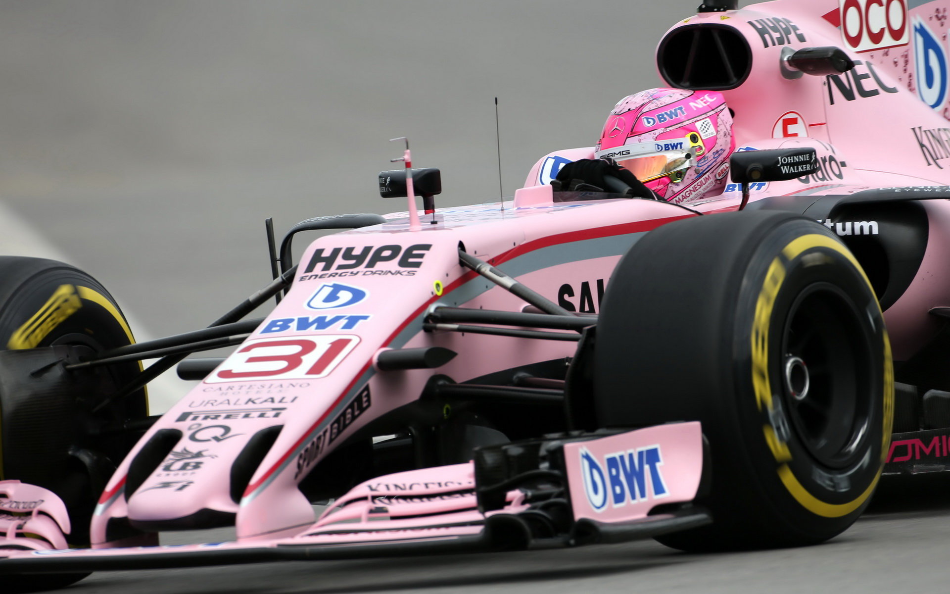 Esteban Ocon při tréninku v Kanadě