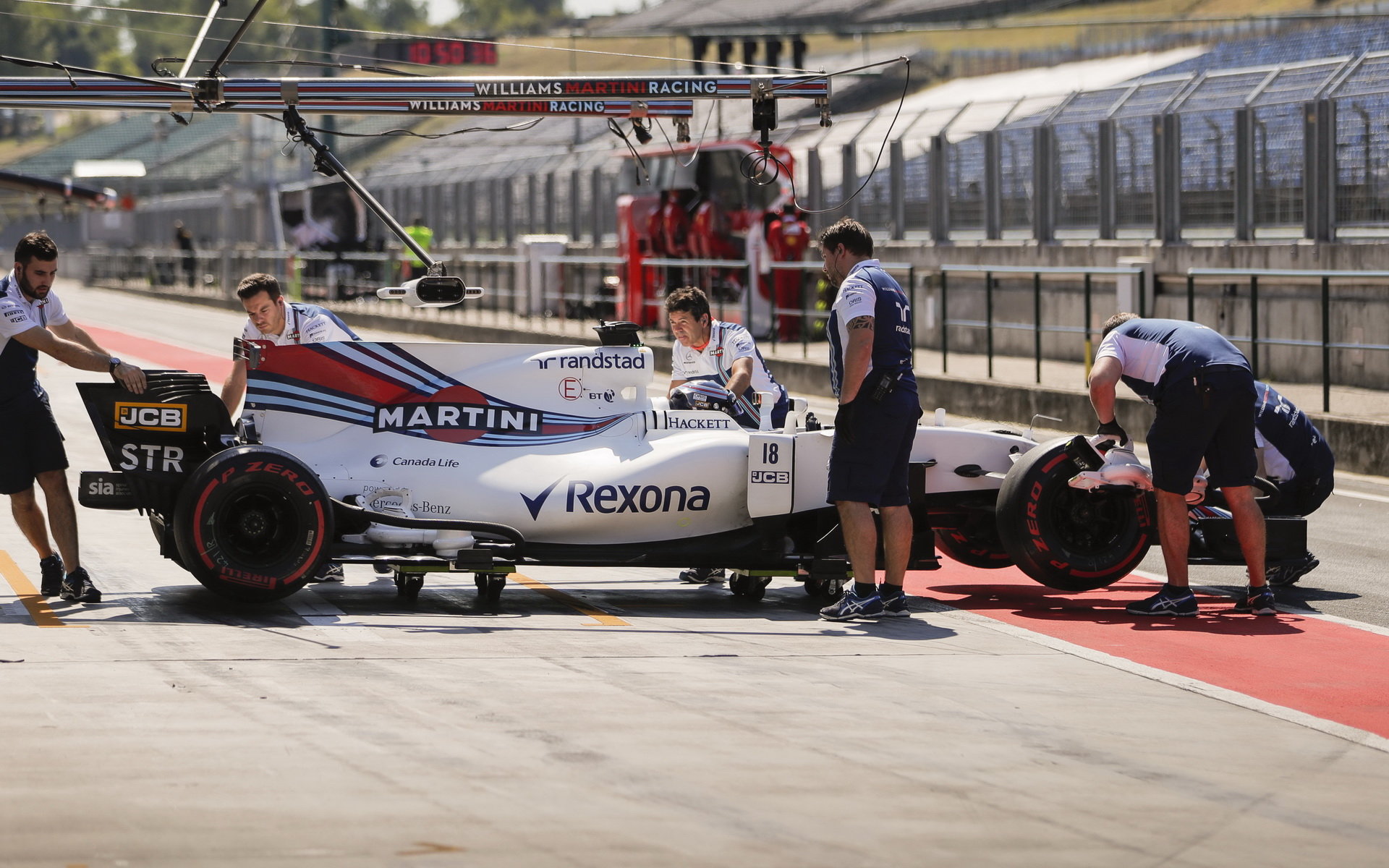 Lance Stroll testuje první den vůz Williams FW38 - Mercedes v Maďarsku