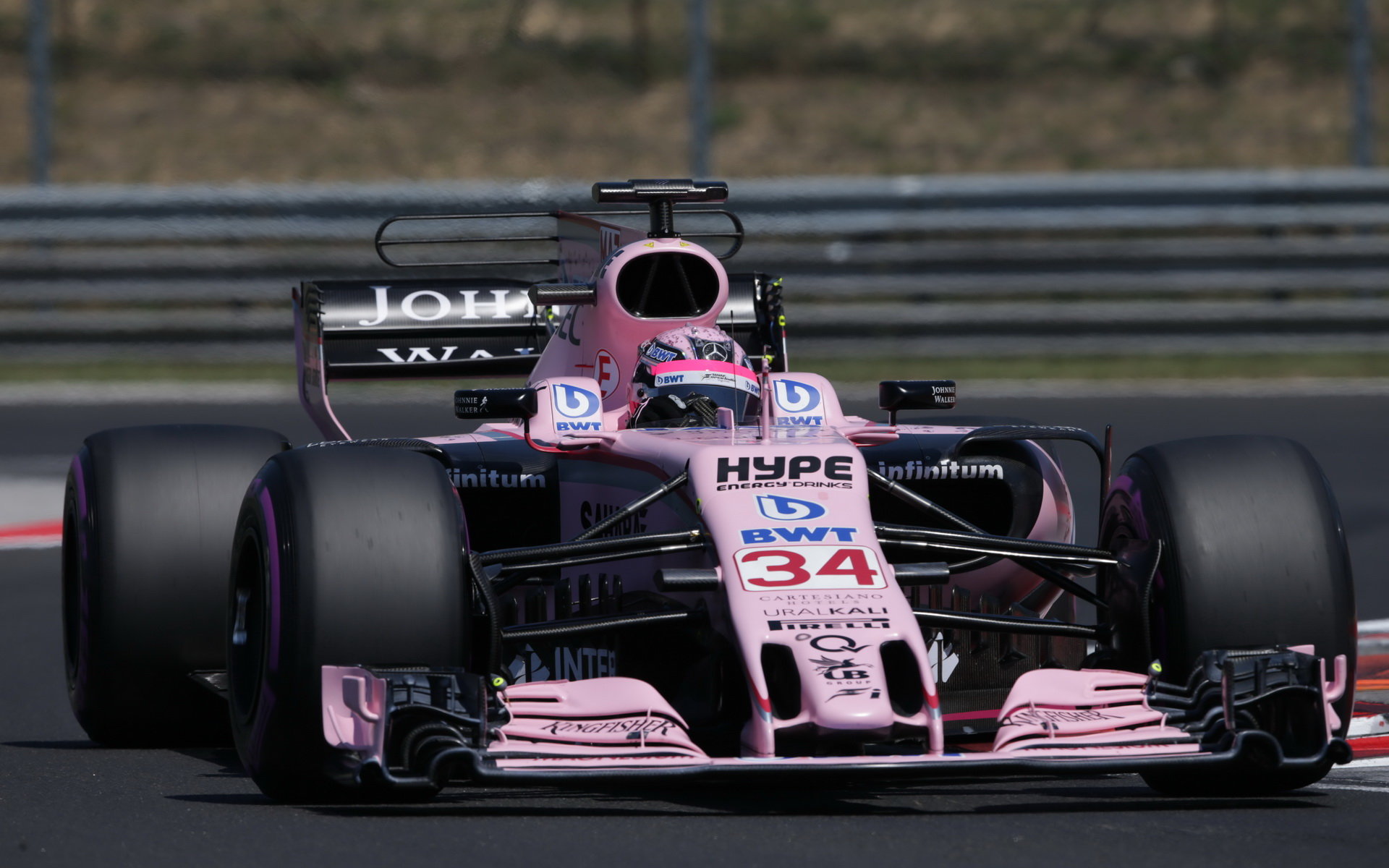 Lucas Auer testuje první den vůz Force India VJM10 - Mercedes v Maďarsku