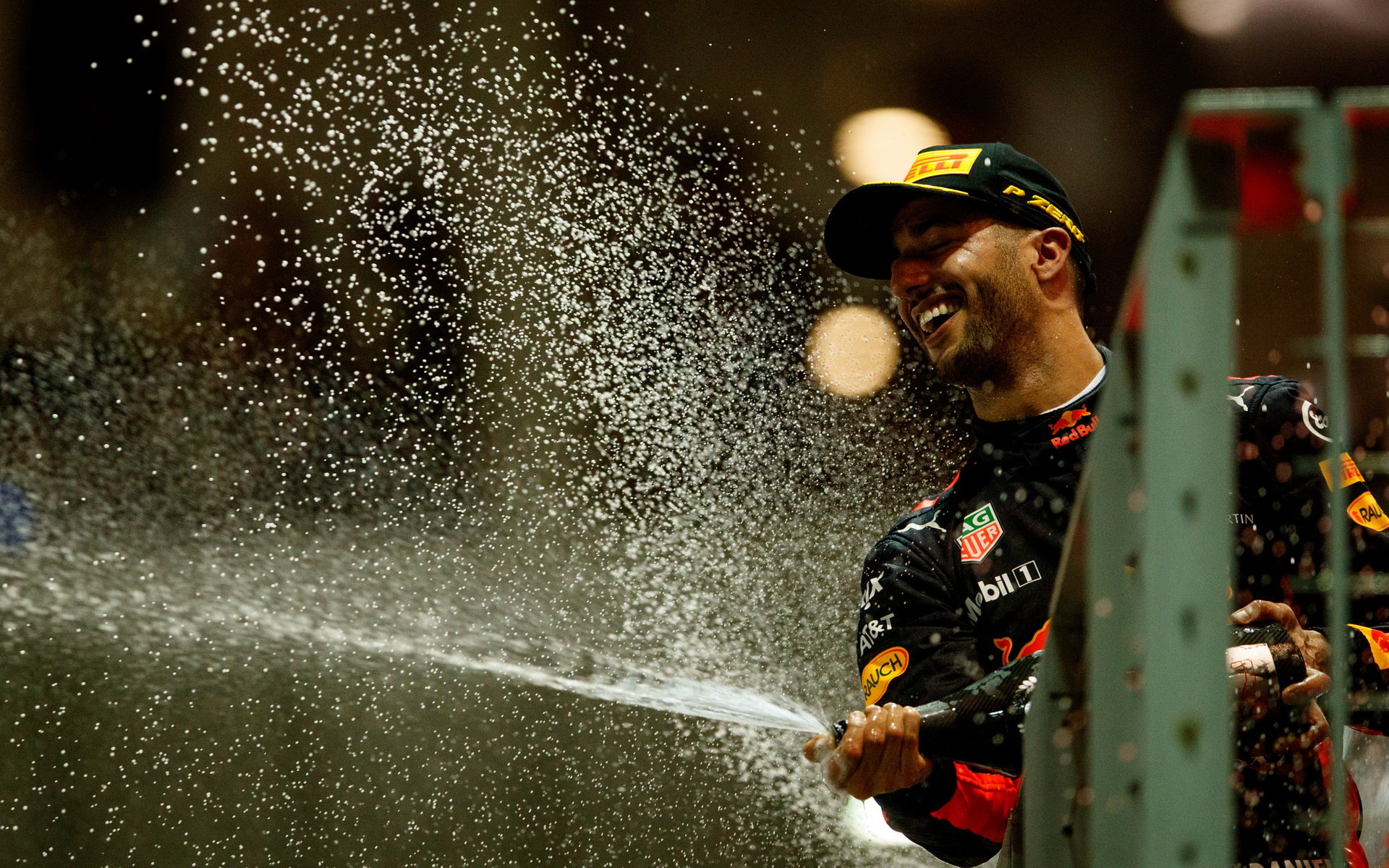 Daniel Ricciardo na pódiu po závodě v Singapuru