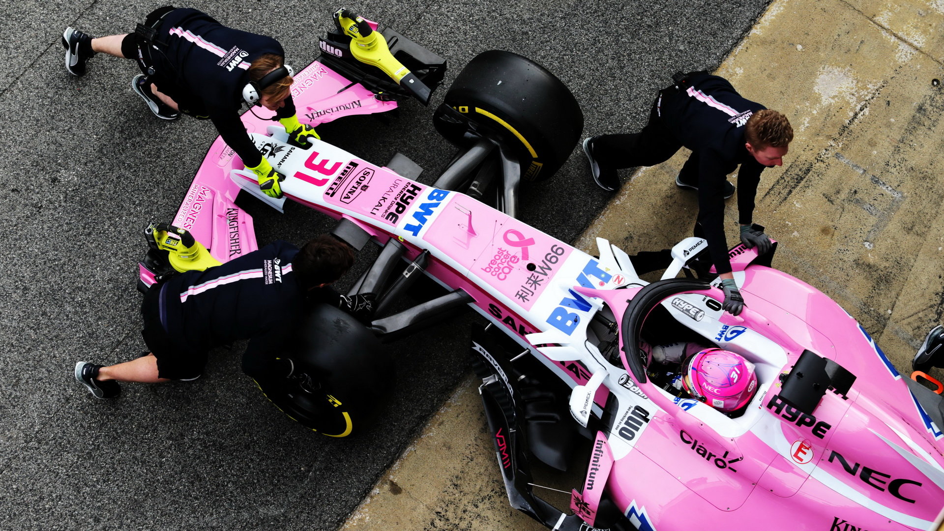 Esteban Ocon při prvních předsezonních testech v Barceloně