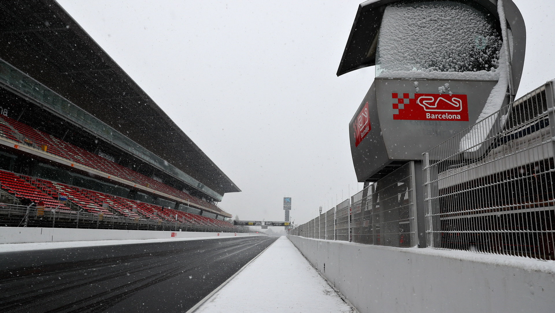 Třetí den předsezonních testů zaskočil všechny, sníh zasypal okruh v Barceloně