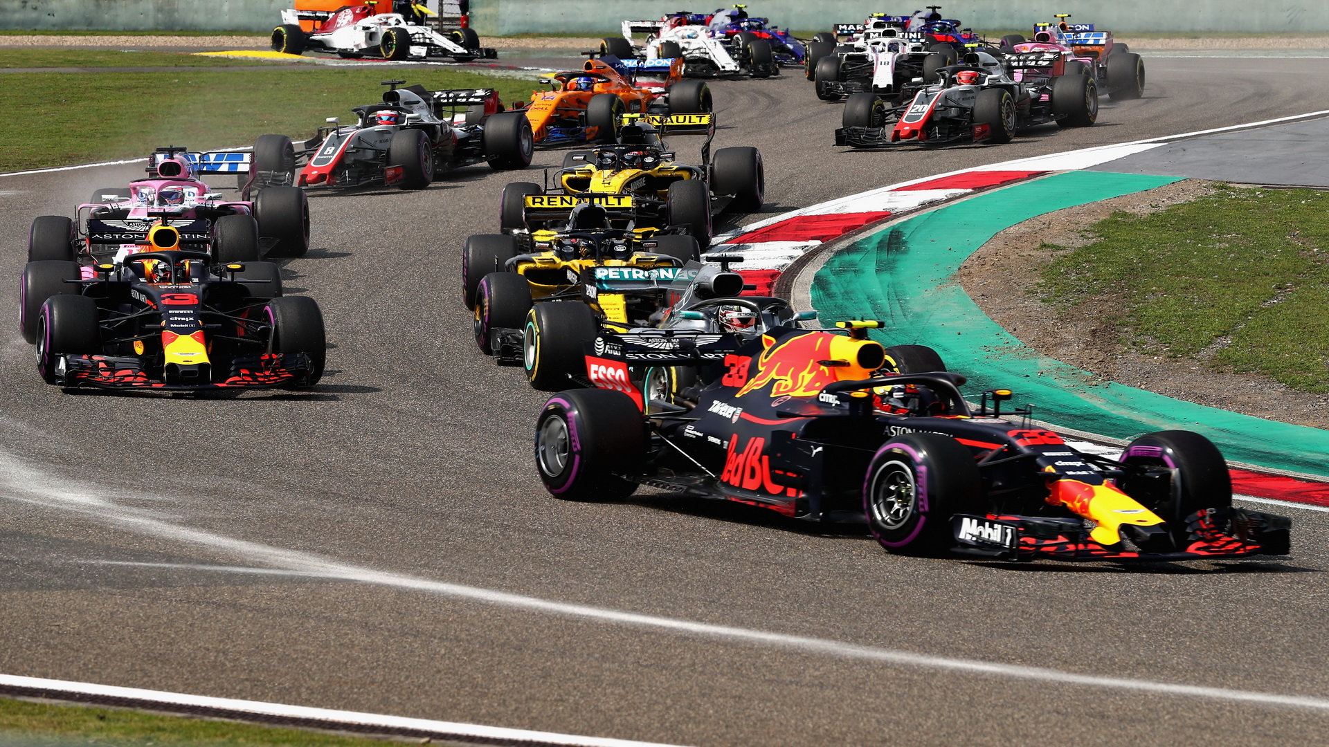 Max Verstappen a Daniel Ricciardo při startu v závodě v Číně