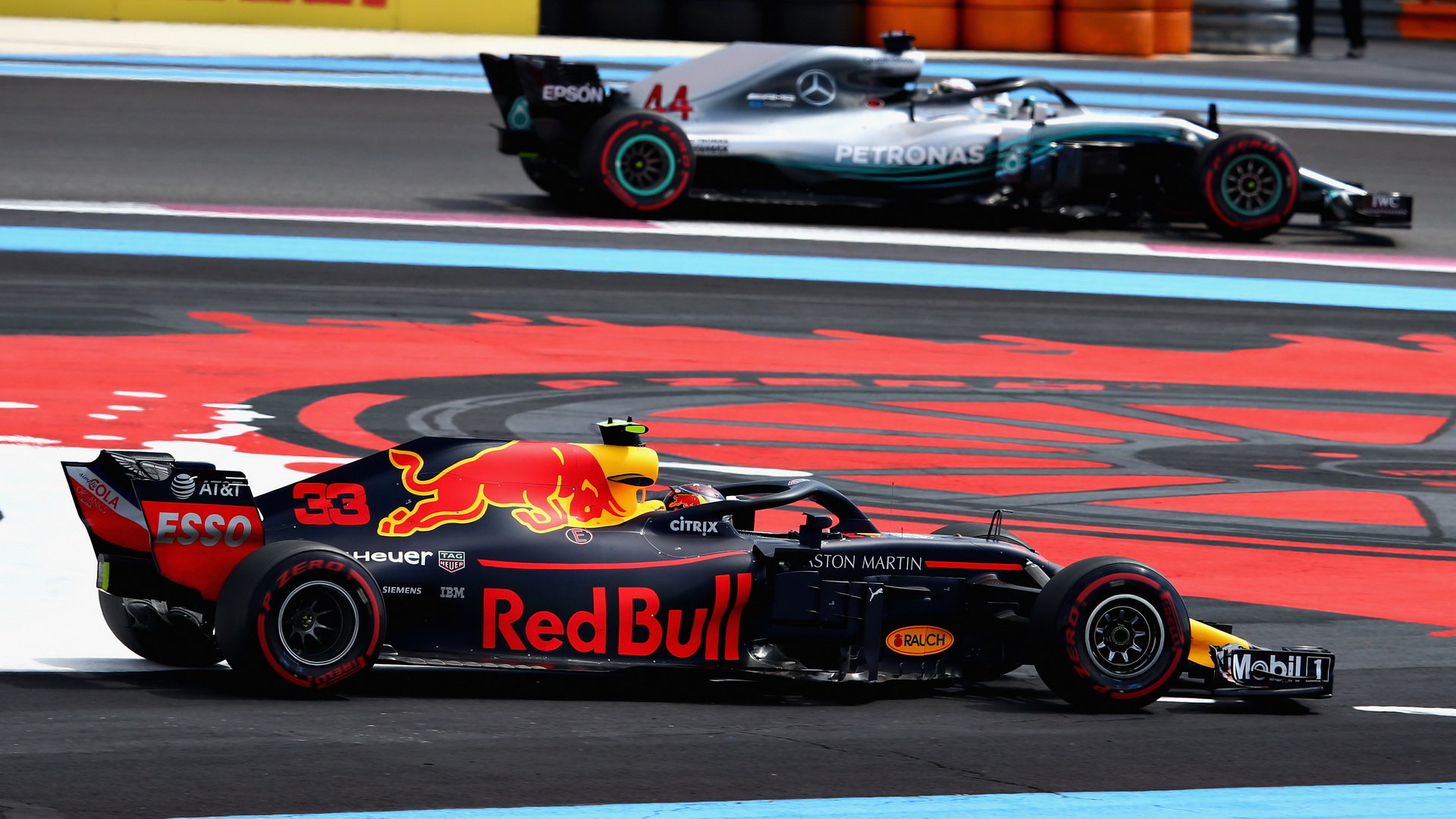 Max Verstappen a Lewis Hamilton v závodě ve Francii